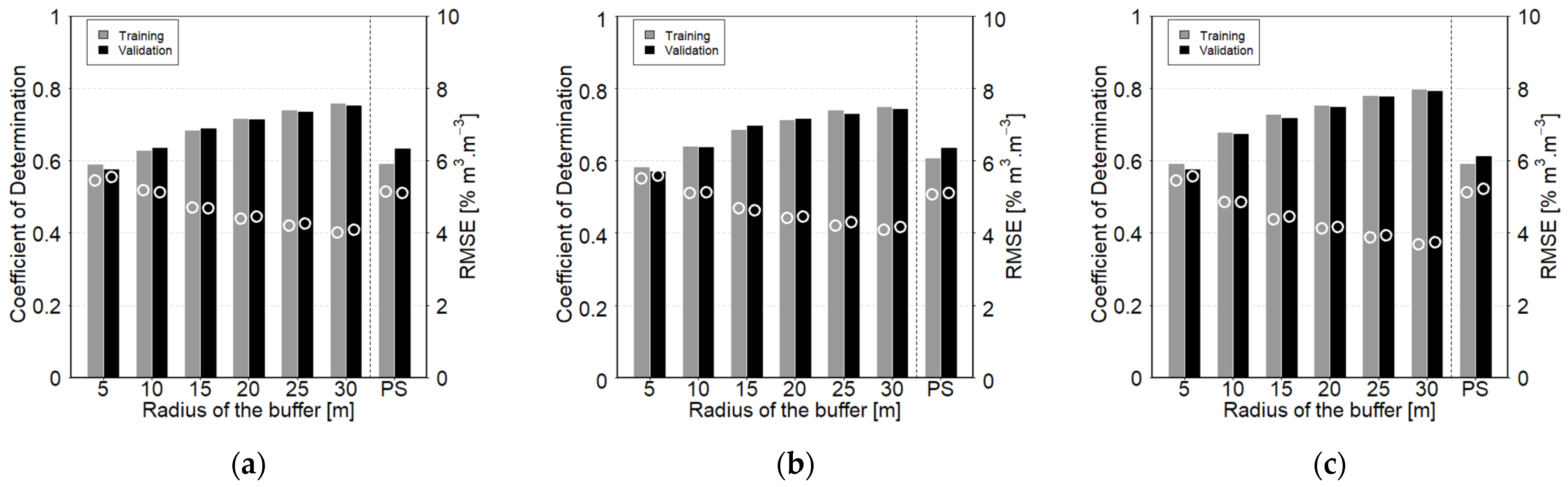 - Chung, J.; Lee, Y.; Kim, J.; Jung, C.; Kim, S. Soil Moisture Content Estimation Based on Sentinel-1 SAR Imagery Using an Artificial Neural Network and Hydrological Components. Remote Sens. 2022, 14, 465. [Google Scholar] [CrossRef]