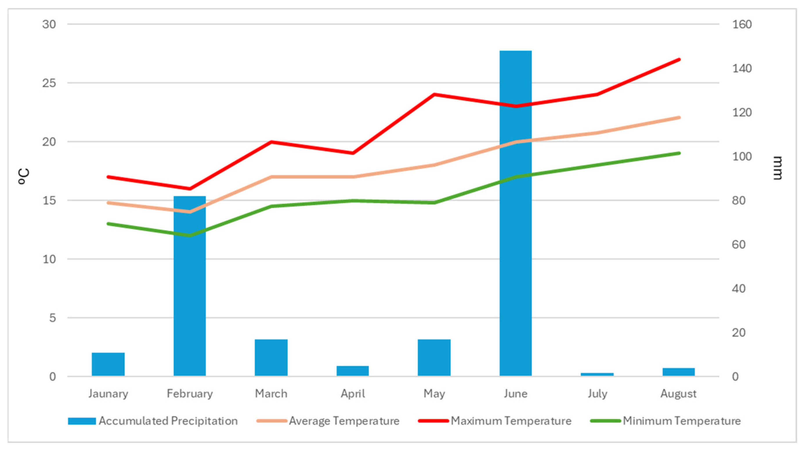 - Pinheiro de Carvalho, M.Â.A.; Ragonezi, C.; Oliveira, M.C.O.; Reis, F.; Macedo, F.L.; de Freitas, J.G.R.; Nóbrega, H.; Ganança, J.F.T. Anticipating the Climate Change Impacts on Madeira’s Agriculture: The Characterization and Monitoring of a Vine Agrosystem. Agronomy 2022, 12, 2201. [Google Scholar] [CrossRef]