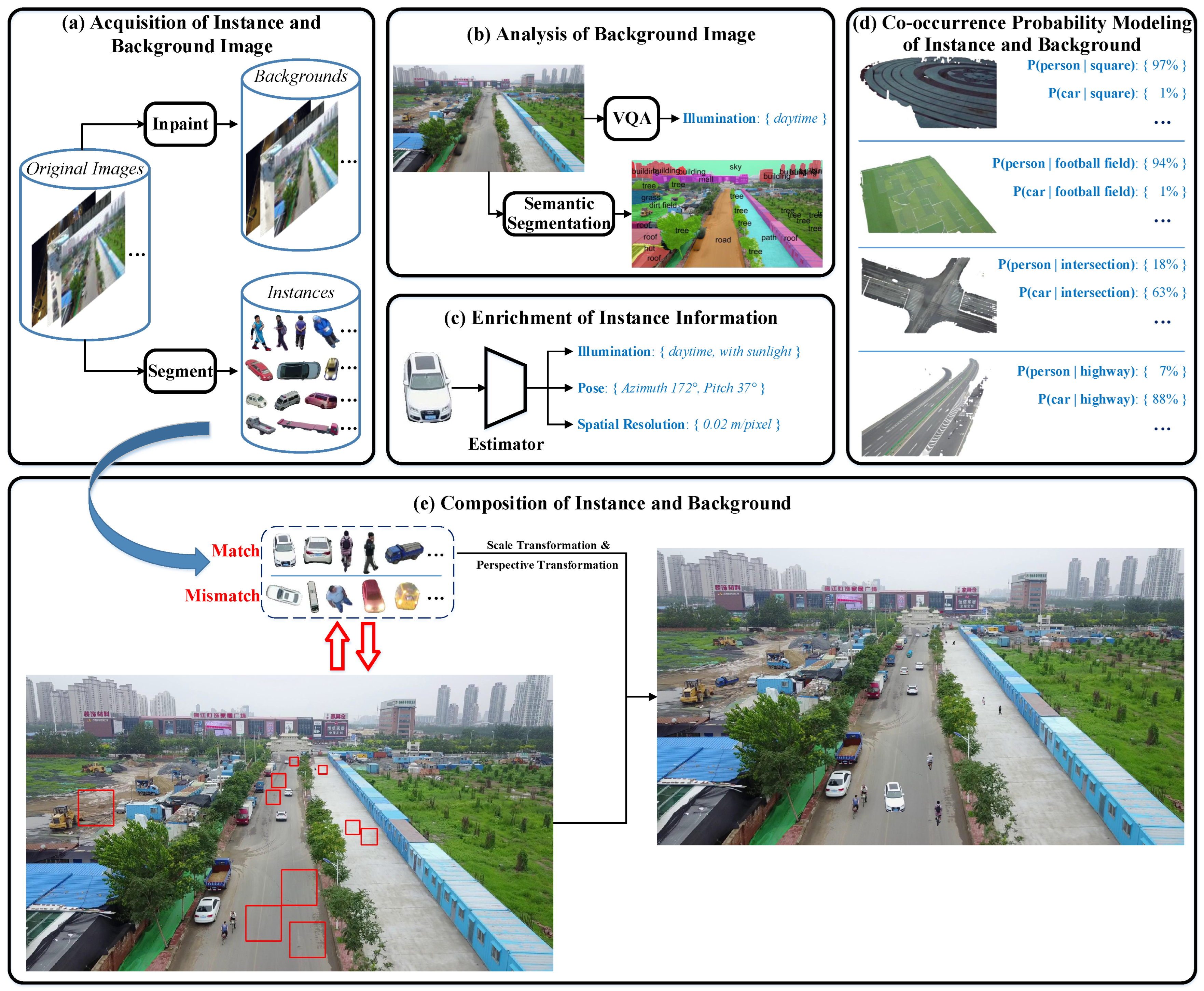 | Year | Method | Instance Acquisition | Background Processing | Instance-Background Composition | Back. | Scal. | Illu. | View. |