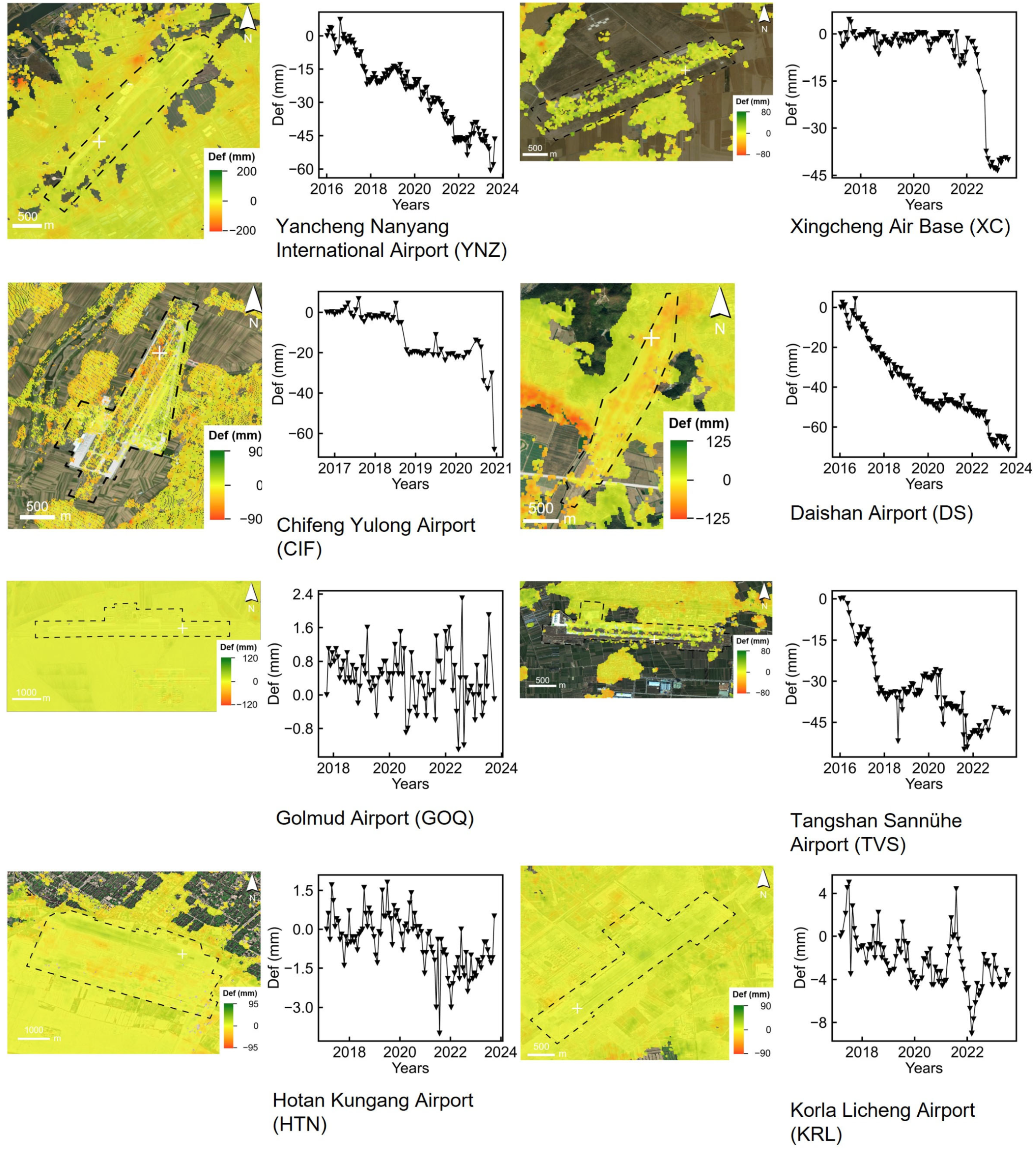 4.1.2. Temporal and Spatial Characteristics of Airport Deformation