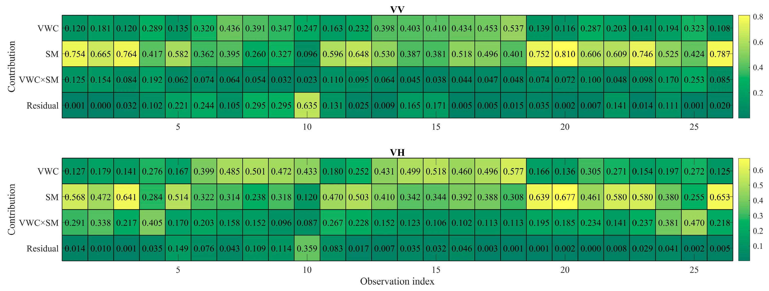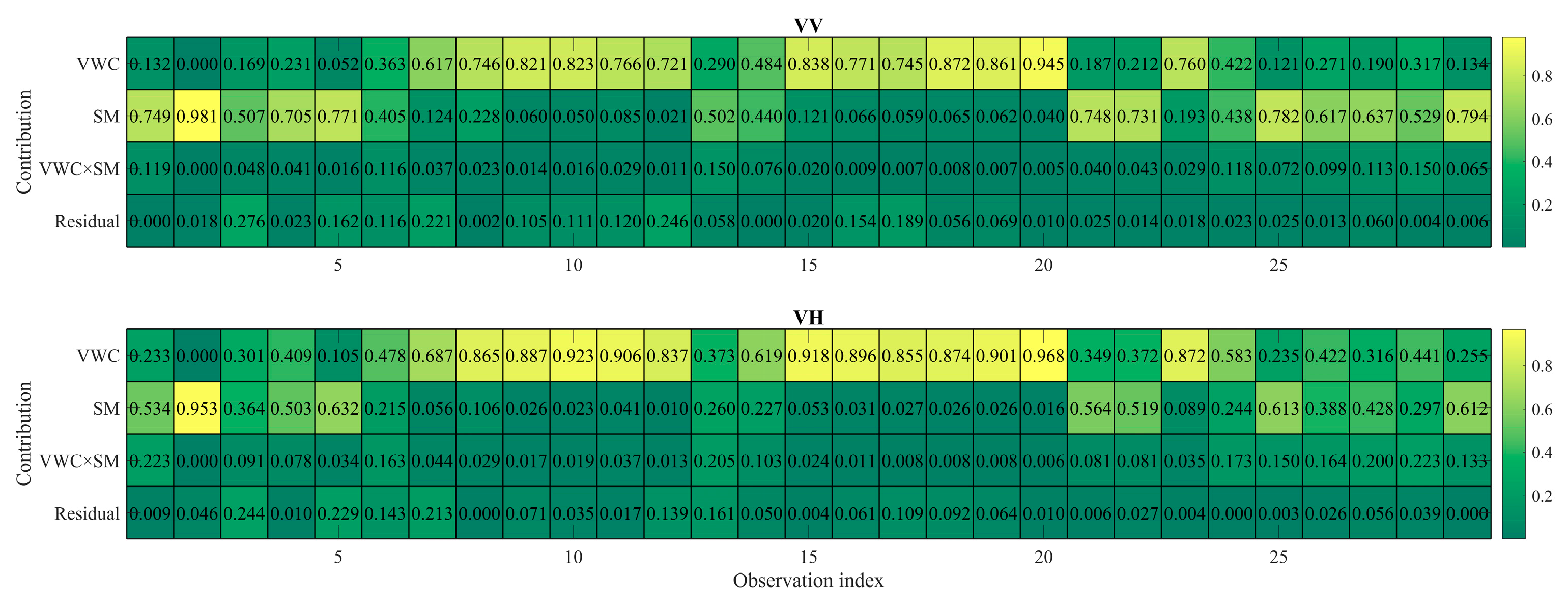 4.2. Sensitivity Analysis of Soil Moisture Retrieval