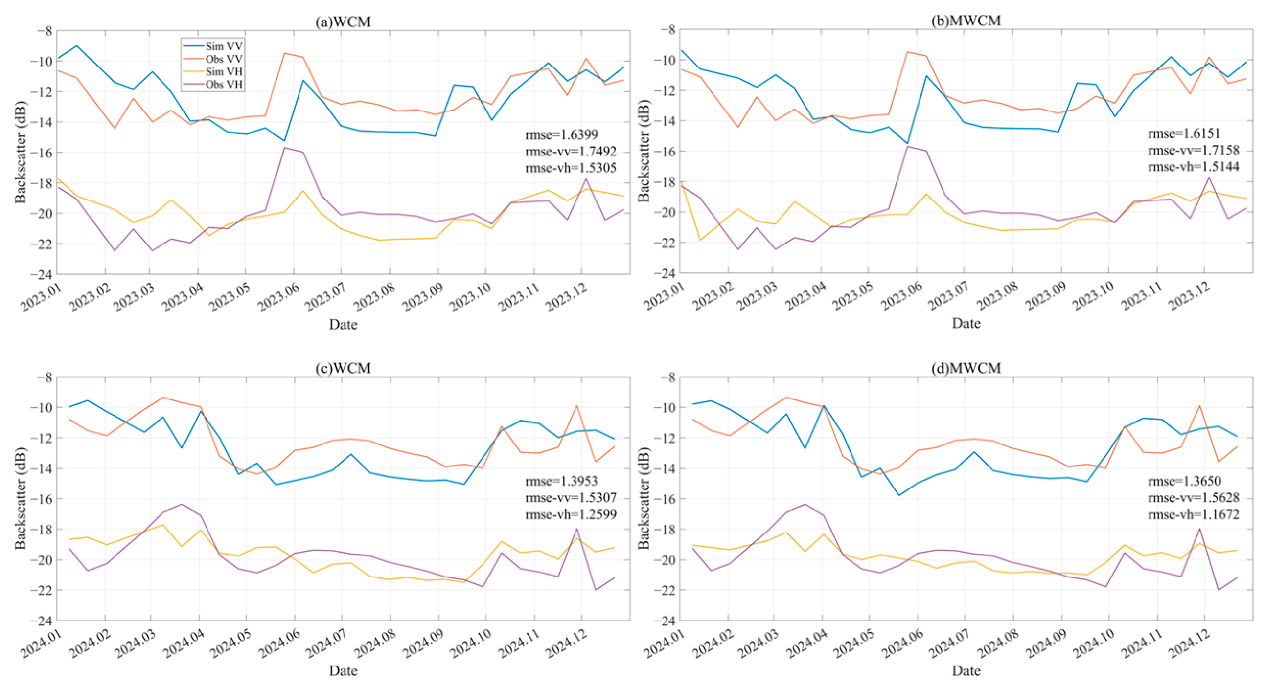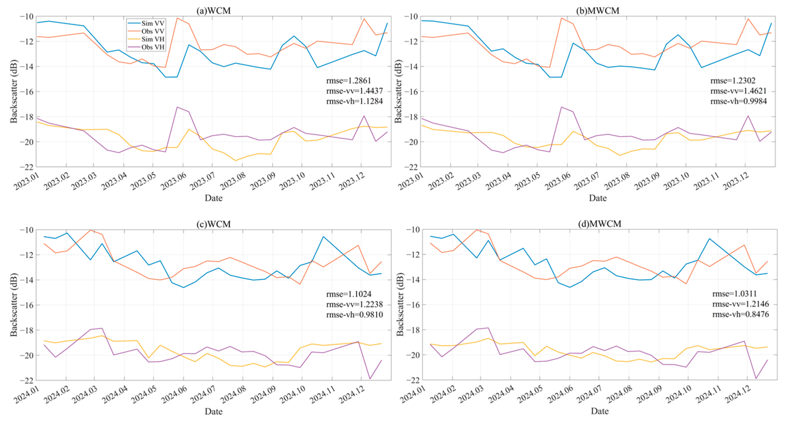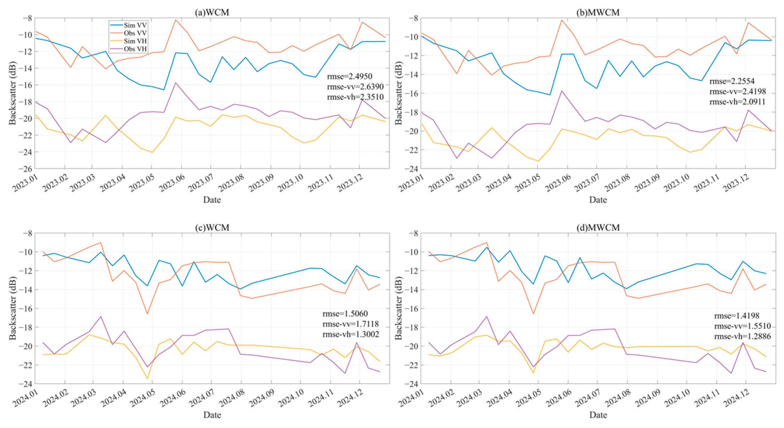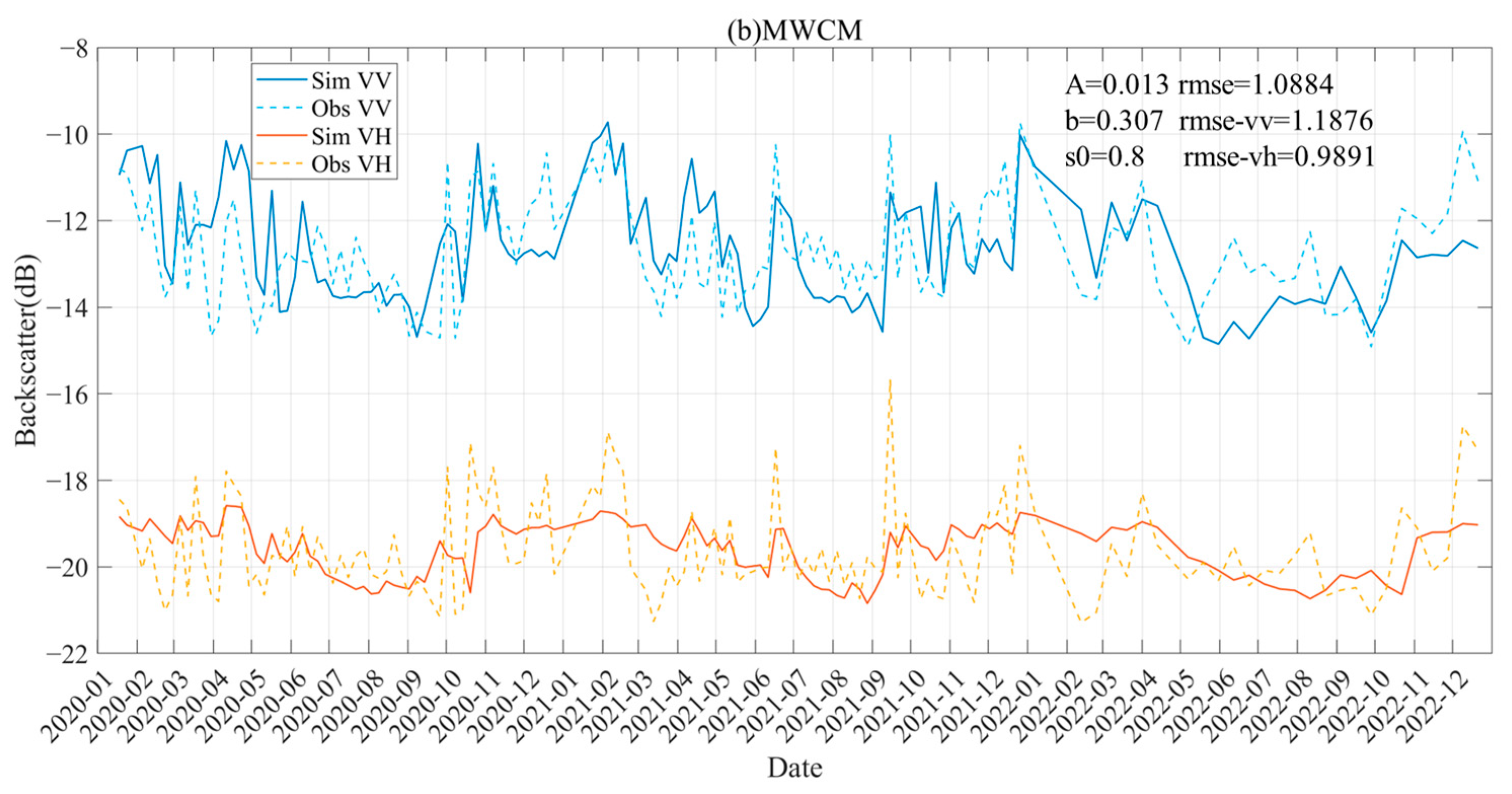 APA StyleHu, J., Fan, D., Tang, B.-H., & Zhu, X.-M. (2026). A New Model Incorporating Soil–Vegetation Interaction Scattering for Improving SAR-Based Soil Moisture Retrieval in Croplands. Remote Sensing, 18(5), 673. https://doi.org/10.3390/rs18050673
