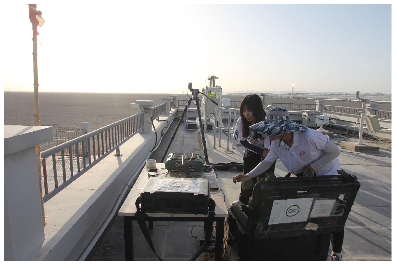 Climatologically, the DRCS is located in an arid desert environment with consistently clear and stable atmospheric conditions. The region experiences very low annual precipitation (on the order of 40 mm) and long sunshine duration exceeding 3200 h per year. During the measurement campaign, atmospheric conditions were dry and cloud-free, with aerosol optical depth values typically in the range of 0.1–0.2 in the absence of dust events. Such conditions provide stable illumination and low atmospheric variability, which are favorable for precise radiometric measurements [