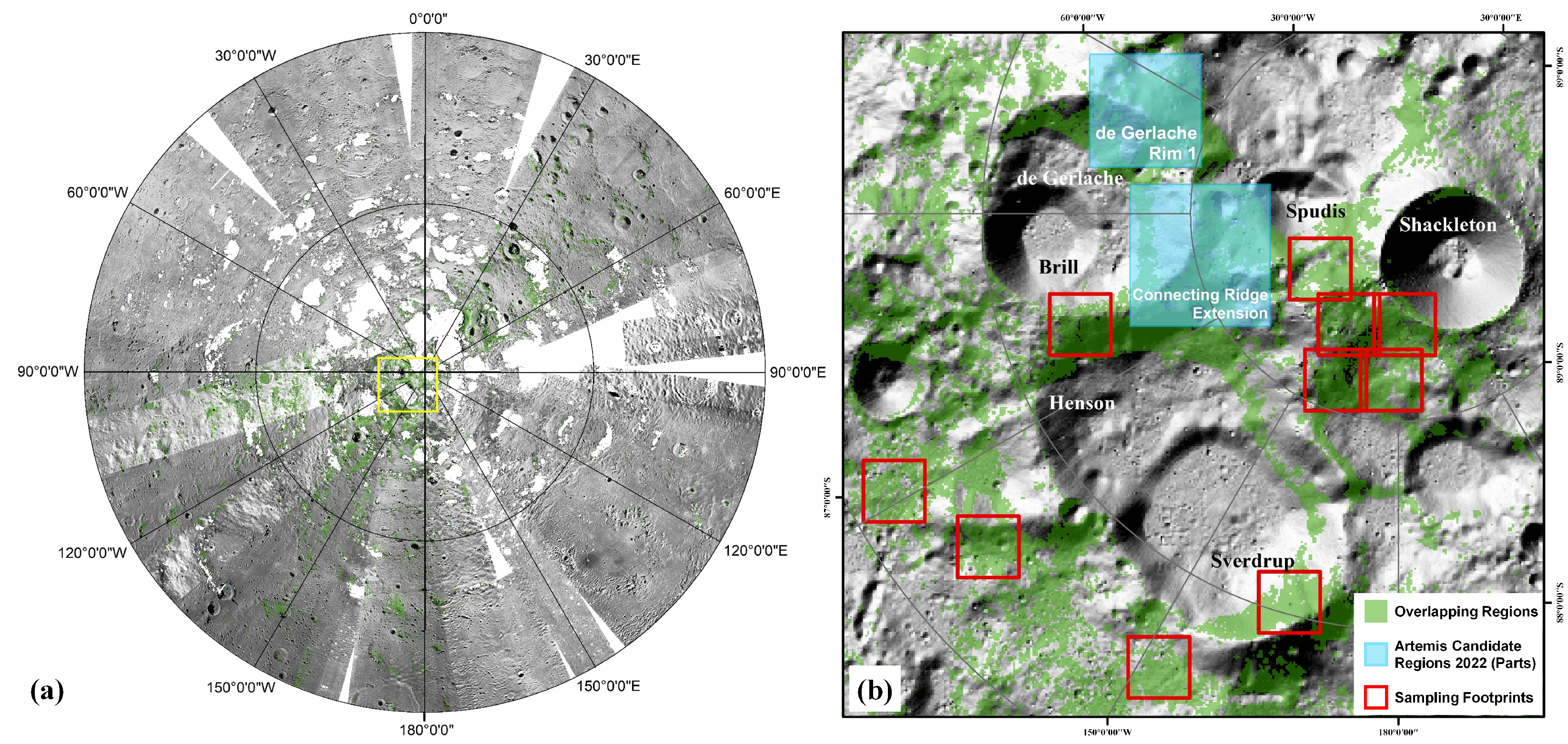 89], have increased scientific interest in potential landing zones within the lunar south polar region. Among the identified scientifically significant areas, De Gerlache Rim 1 and Connecting Ridge Extension were initially identified by NASA in 2022 as 2 of the 13 candidate landing regions for the Artemis III mission [