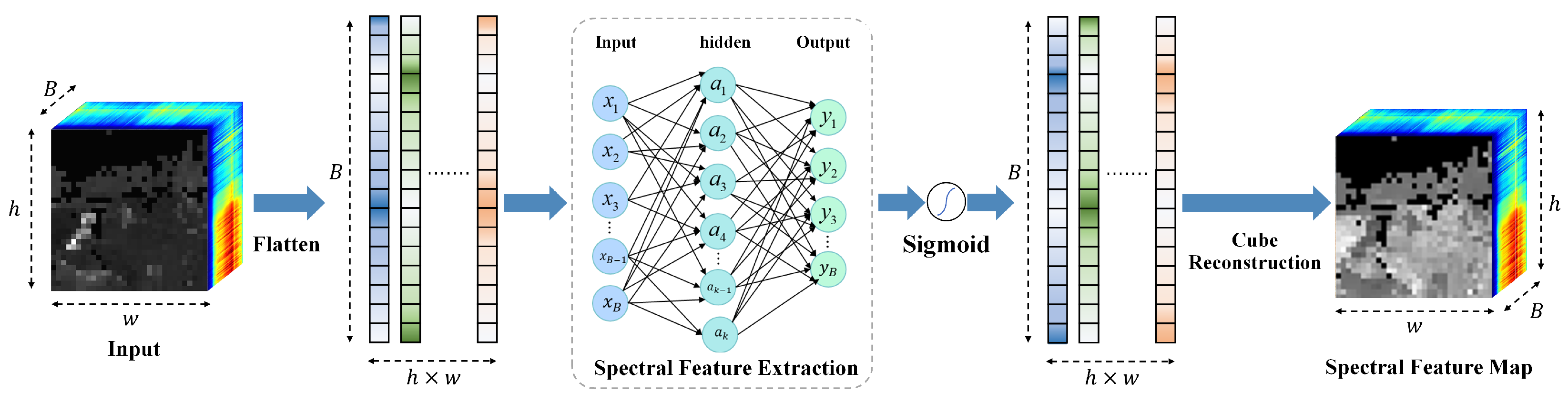 29]. Among them, convolutional neural networks (CNNs) have become the prevailing paradigm for terrestrial hyperspectral restoration, benefiting from their inherent ability to automatically learn hierarchical spatial–spectral features and model complex nonlinear relationships directly from data [