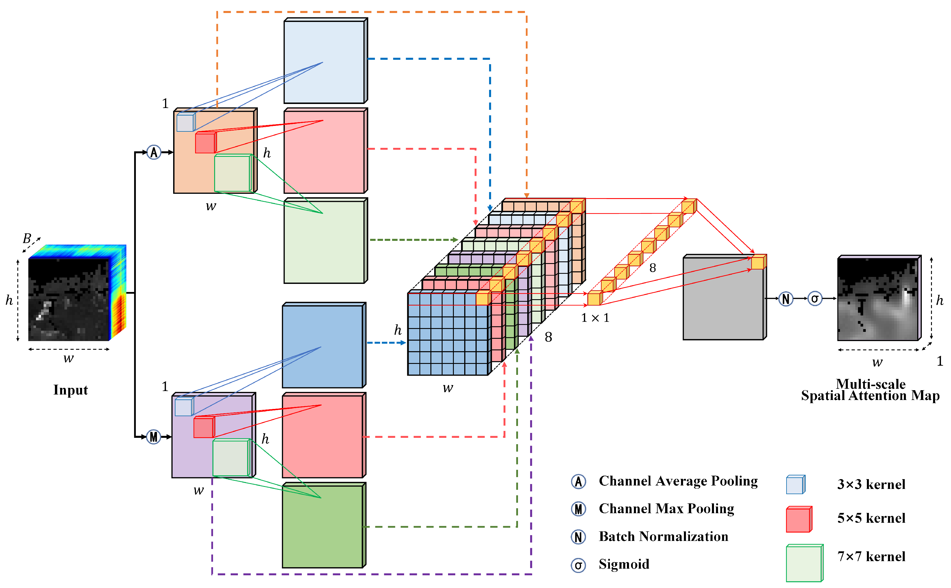 Cross-Scale Residual Feature Fusion: A cross-scale residual feature fusion strategy is proposed to enhance multi-scale feature representation by integrating pixel-wise spectral features with spatial context across scales, thereby improving the extraction and integration of spatial–spectral details.