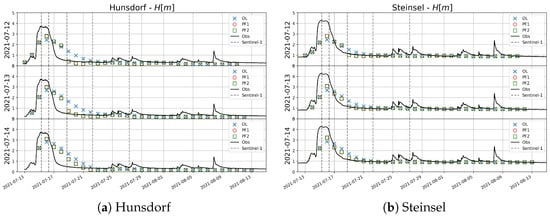 - Di Mauro, C.; Hostache, R.; Matgen, P.; Pelich, R.; Chini, M.; van Leeuwen, P.J.; Nichols, N.; Blöschl, G. A Tempered Particle Filter to Enhance the Assimilation of SAR-Derived Flood Extent Maps Into Flood Forecasting Models. Water Resour. Res. 2022, 58, e2022WR031940. [Google Scholar] [CrossRef]