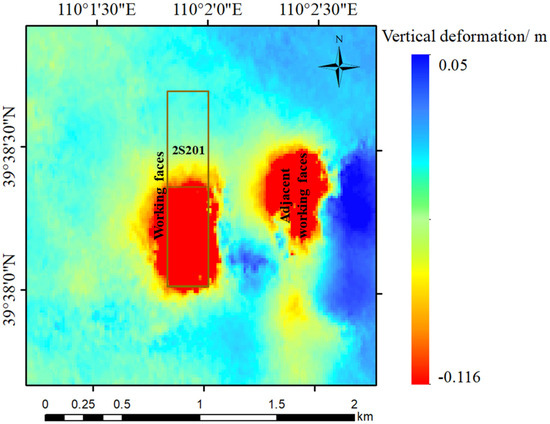 Surface cumulative subsidence monitored by D-InSAR at 2S201 working face.