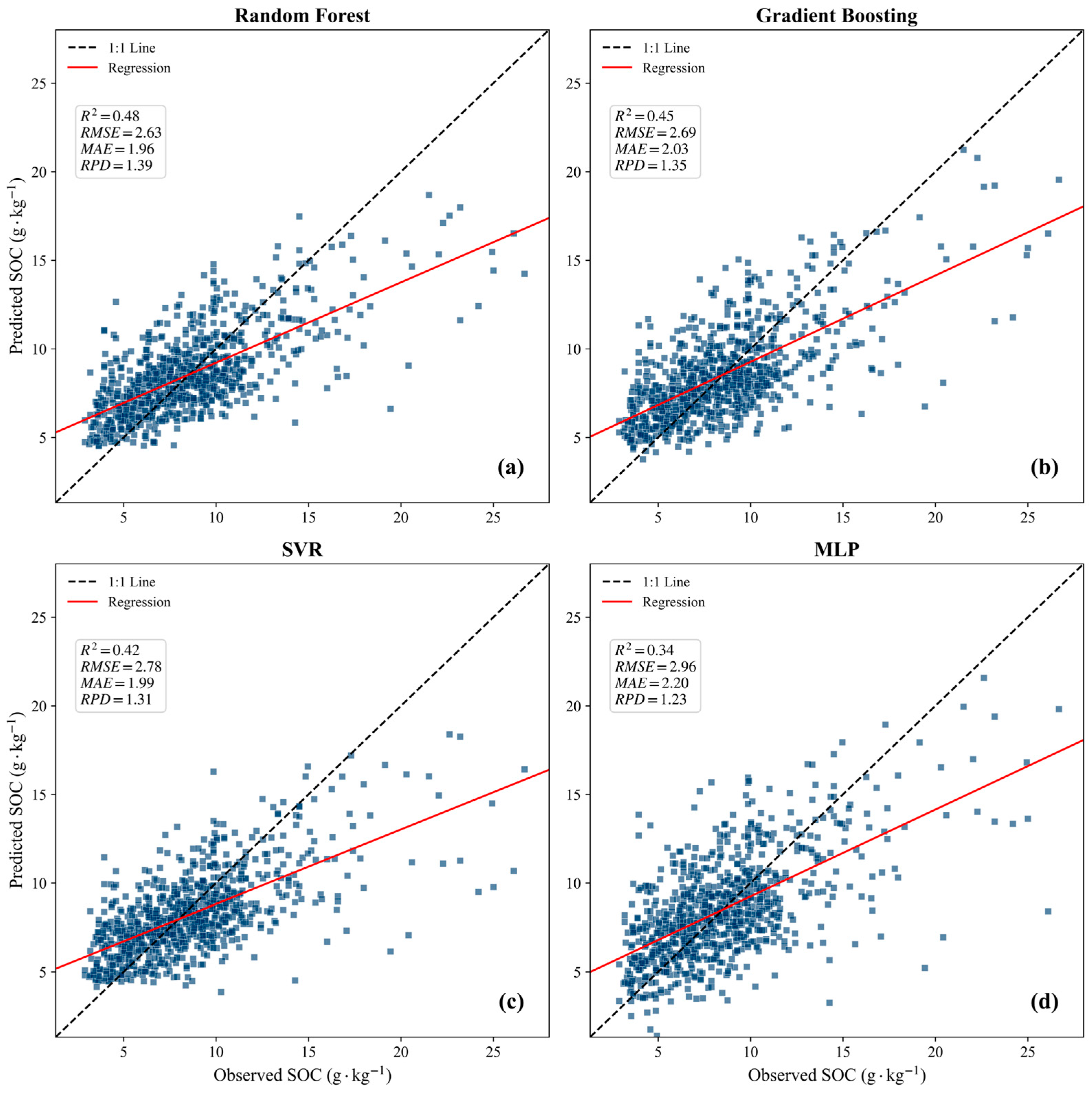 - Li, S.; Li, X.; Ge, X. Prediction and mapping of soil organic carbon in the Bosten Lake oasis based on Sentinel-2 data and environmental variables. Int. Soil Water Conserv. Res. 2025, 13, 436–446. [Google Scholar] [CrossRef]