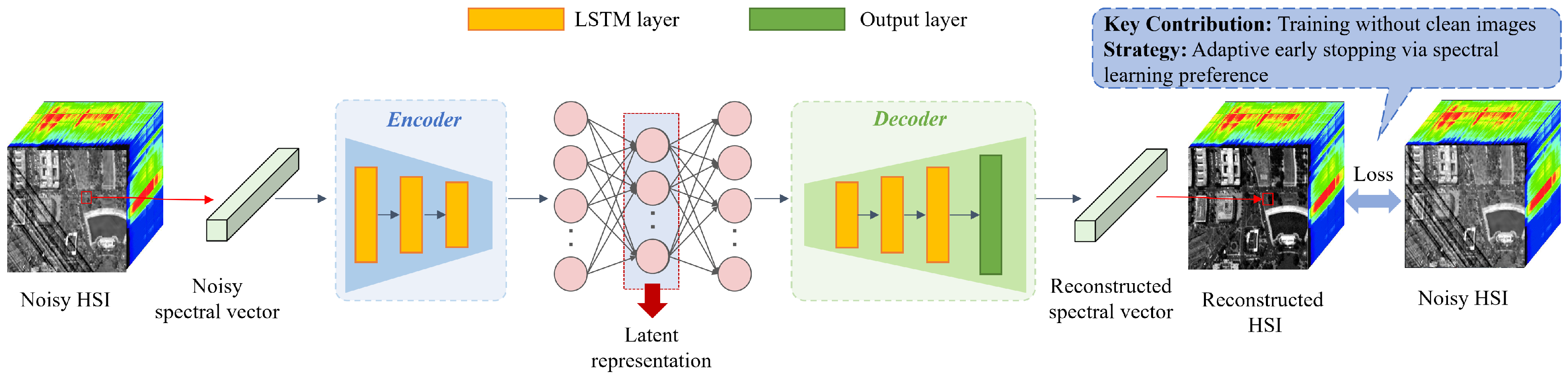 - Without requiring clean reference data, the proposed approach provides a practical solution for real-world scenarios where noise-free hyperspectral observations are unavailable.