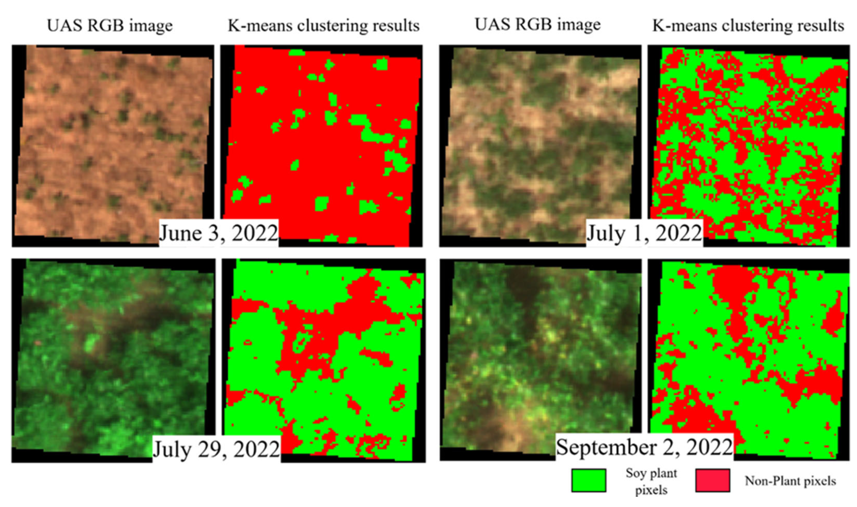 - Prince Czarnecki, J.M.; Samiappan, S.; Bheemanahalli, R.; Huang, Y.; Shammi, S.A. A Brief History of Remote Sensing of Soybean. Agron. J. 2025, 117, e70004. [Google Scholar] [CrossRef]