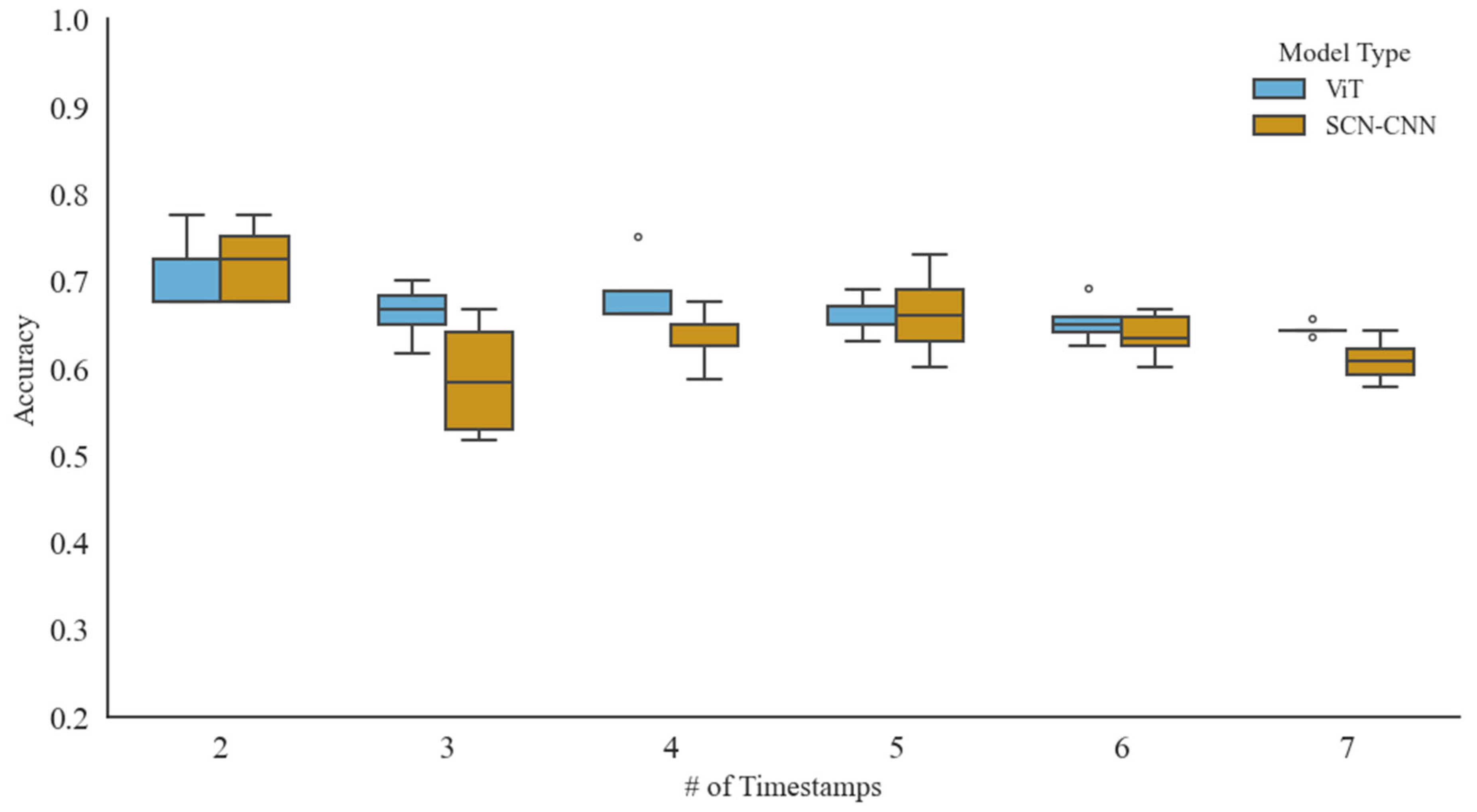 3.2.4. Model Performance Visualization over Each Timestamp of a Model