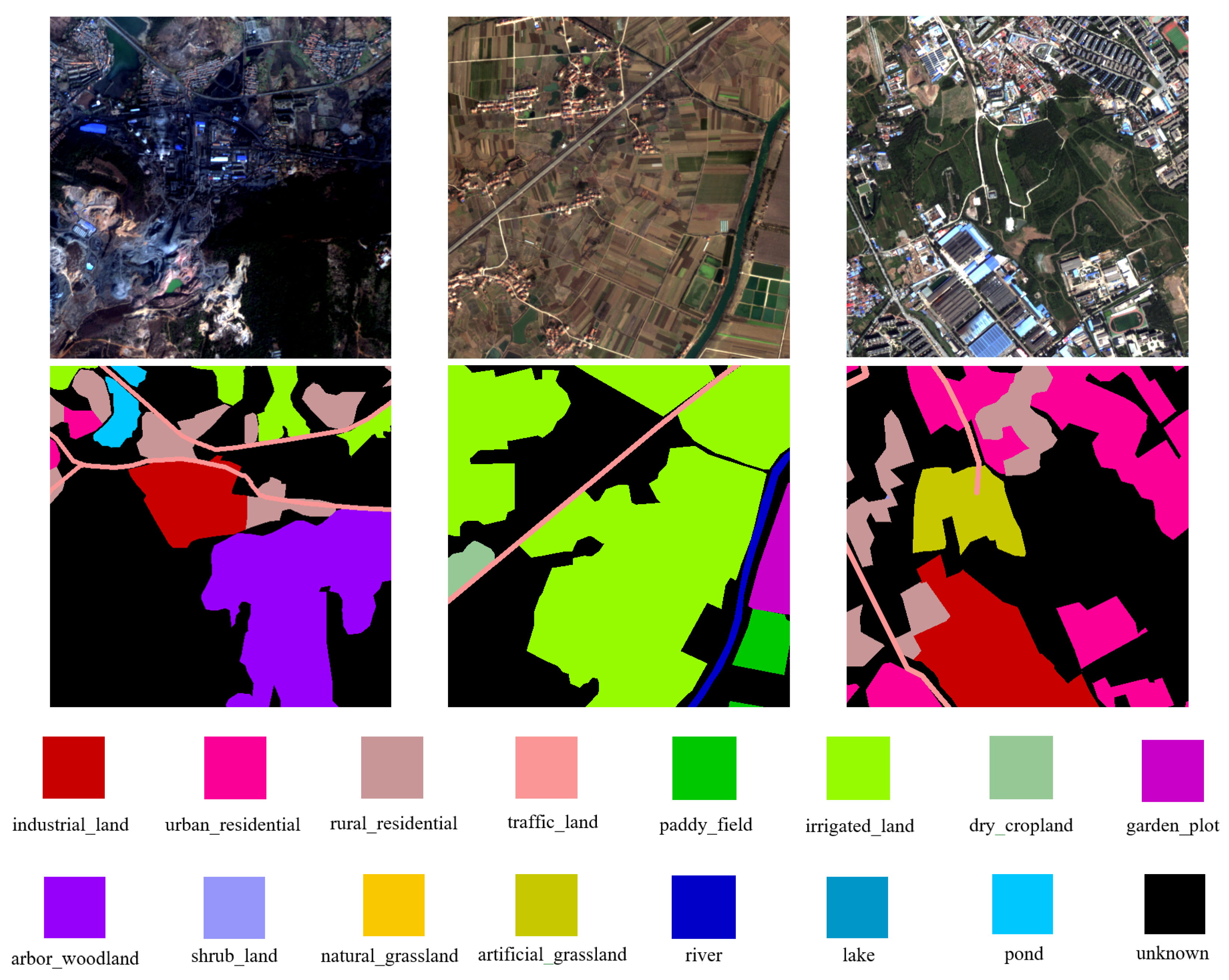 38] and the Gaofen Image Dataset (GID)—with representative samples shown in