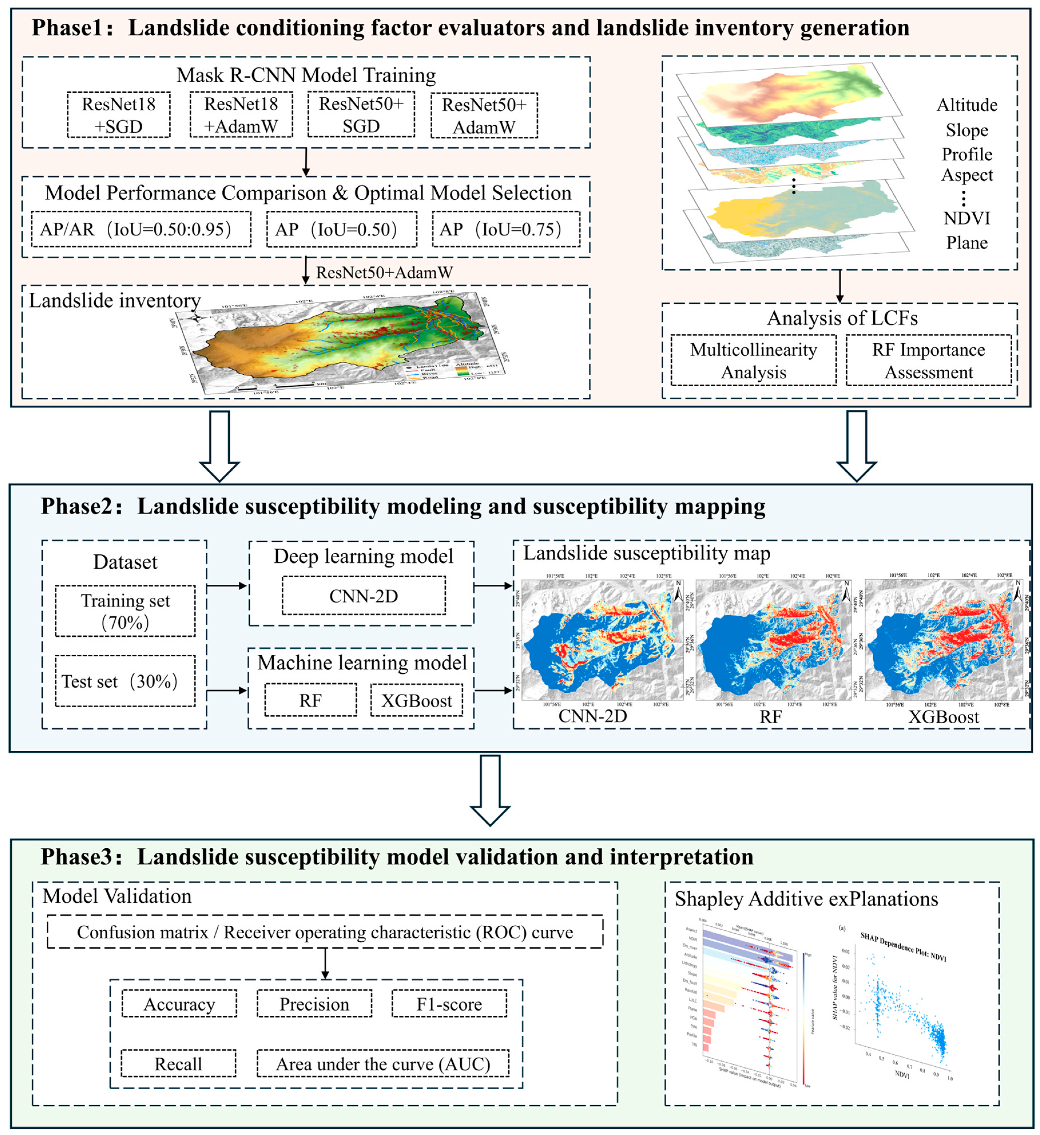 - Landslide samples were automatically extracted in complex terrain, enabling the construction of landslide inventories for susceptibility assessment and an integrated workflow from automatic landslide identification to susceptibility assessment.