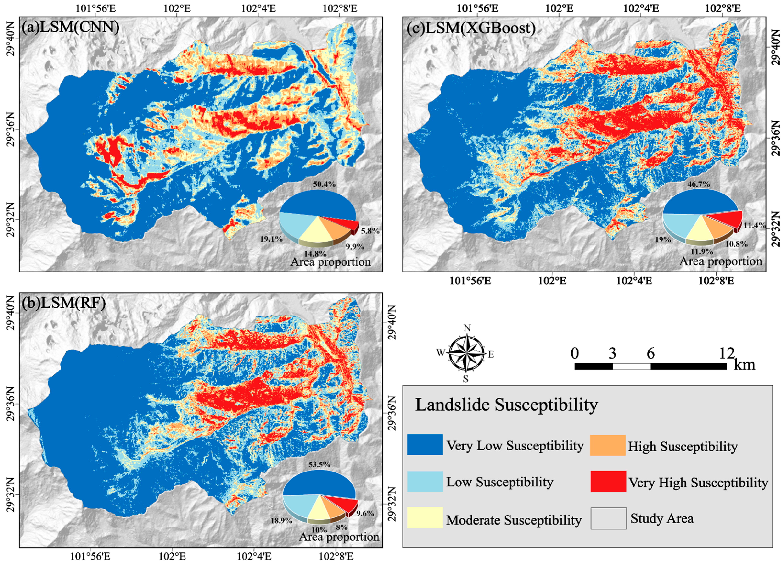 4.4. Landslide Susceptibility Model Validation and Comparison