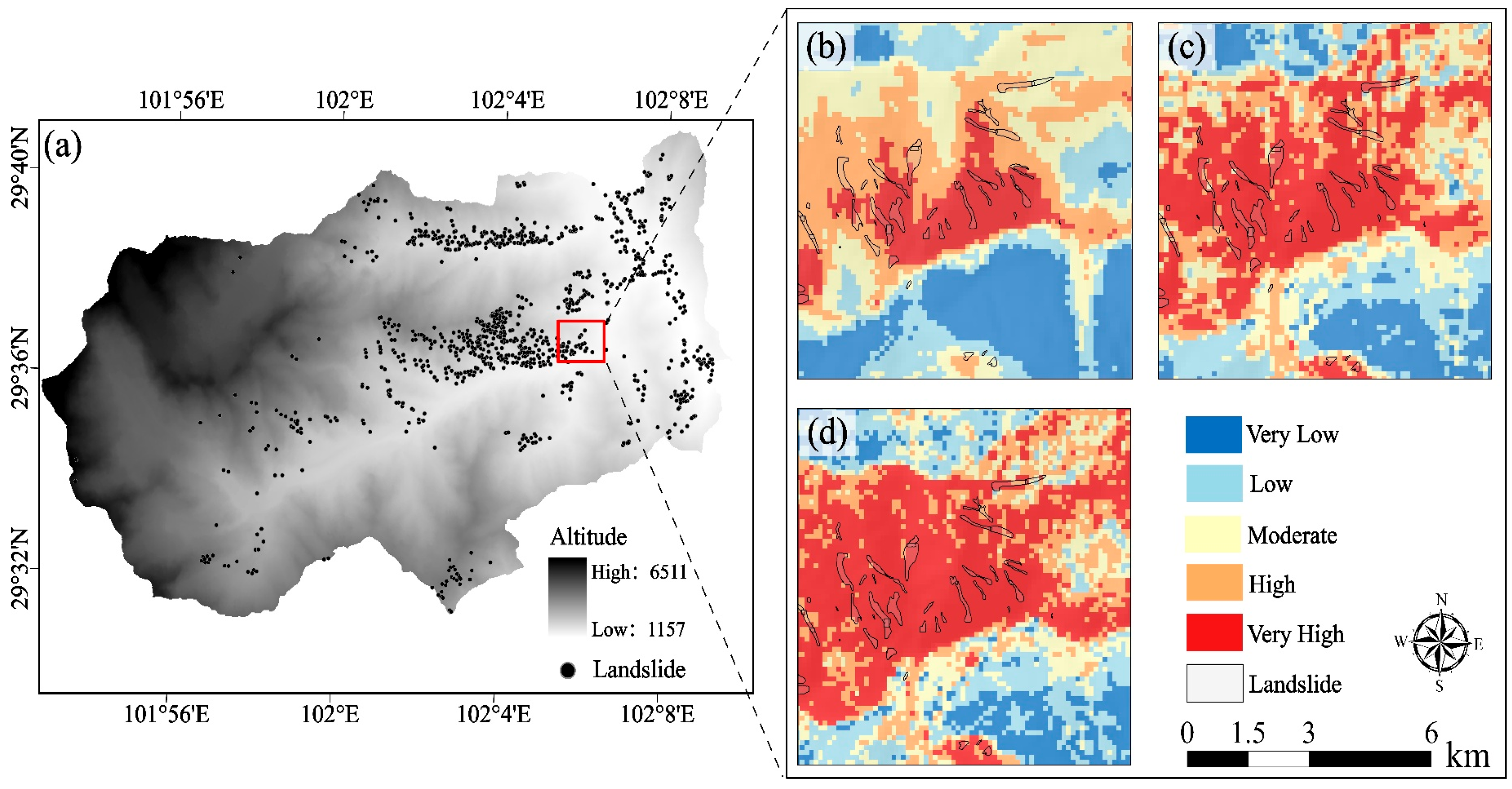 - Hussain, M.A.; Chen, Z.; Zhou, Y.; Meena, S.R.; Ali, N.; Shah, S.U. Landslide susceptibility mapping using artificial intelligence models: A case study in the Himalayas. Landslides 2025, 22, 2089–2103. [Google Scholar] [CrossRef]