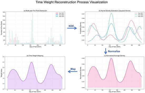 The spatial distribution vector is combined with a dynamically modulated temporal weighting factor to compute a final discrimination score for each land cover class. Spatial weights are optimized from expert-labeled data using Differential Evolution (Section 2.2.3), while temporal weights are derived from multi-year seasonal fire patterns via Kernel Density Estimation (Section 2.2.4). Critically, temporal modulation is applied exclusively to the cropland class, preserving fixed weights for all other land cover types to prevent the suppression of perennial thermal sources (e.g., industrial facilities, photovoltaic arrays) during non-burning seasons. The class with the highest weighted score determines the final classification as either straw burning or non-straw burning.