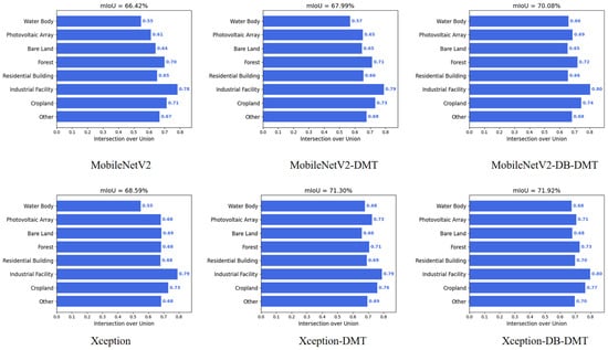 - An Enhanced DB-DMT Strategy. By restructuring the original DMT framework into a dual-backbone architecture, our semi-supervised mechanism achieves 71.92% mean Intersection over Union (mIoU) with only 1225 labeled samples, outperforming the original single-backbone DMT baseline by up to 2.09 pp and significantly improving detection of thermally confounding classes (Water Body: +13.2 pp, Photovoltaic Array: +8.1 pp).