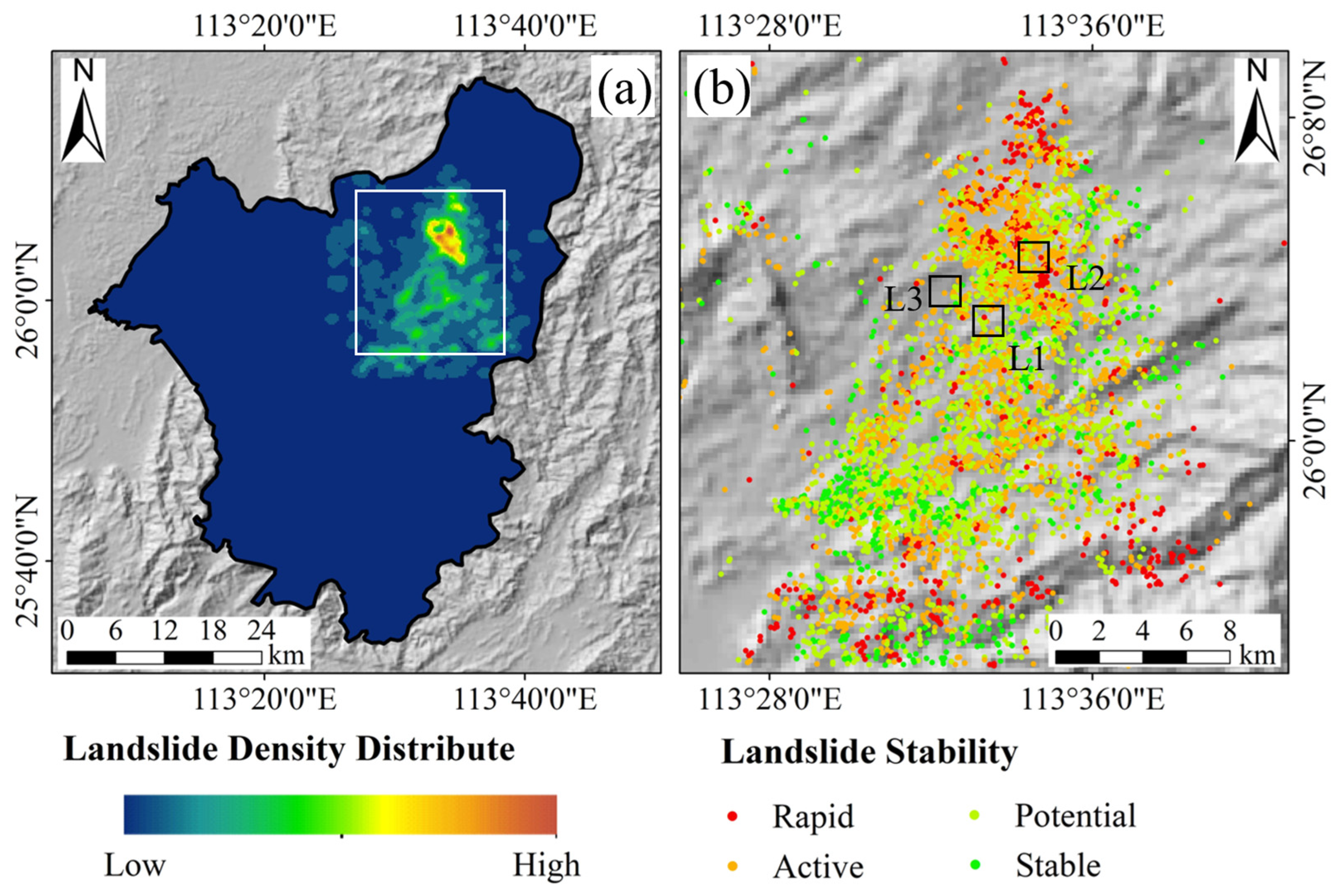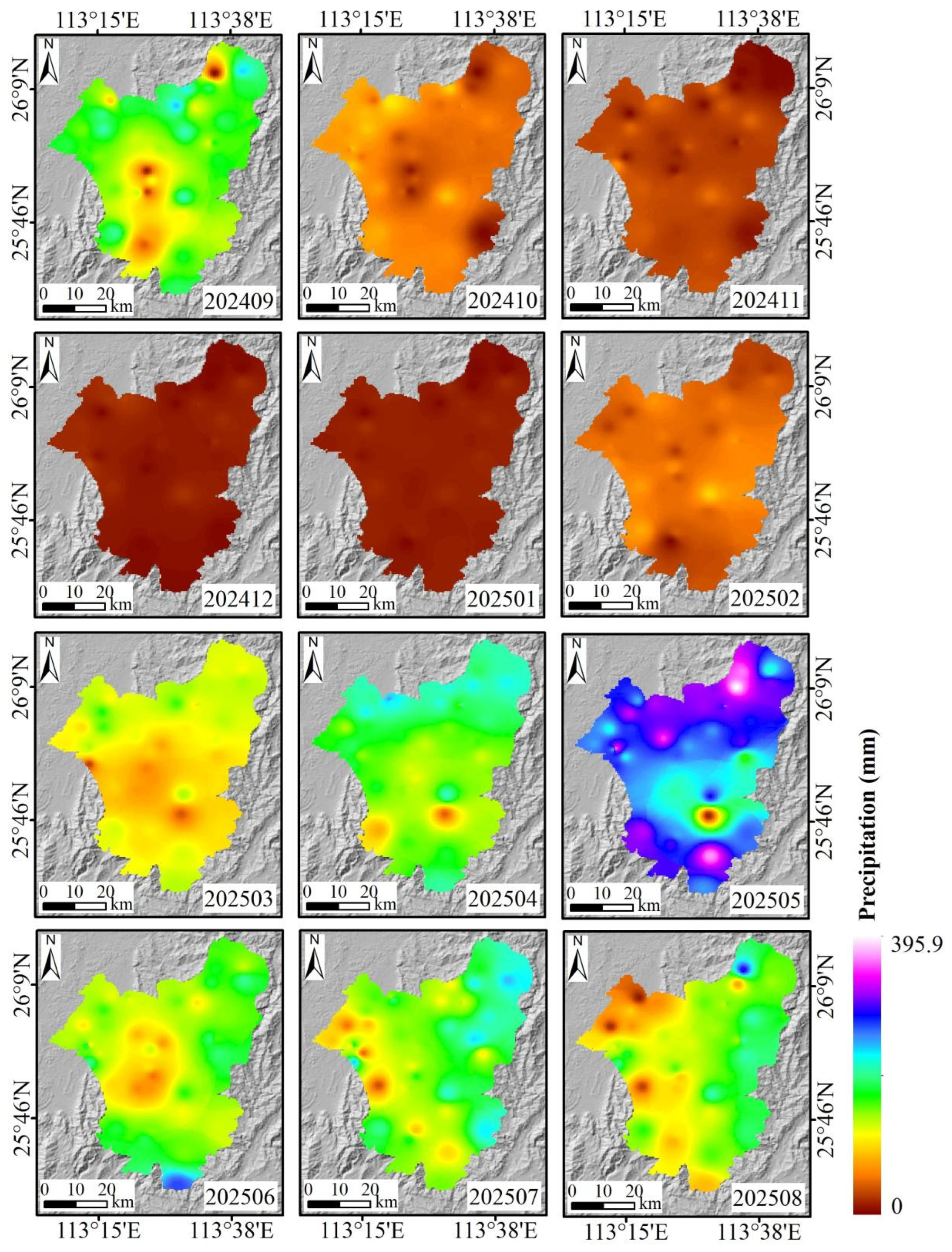 - Ma, H.; Wang, F.; Fu, Z.; Feng, Y.; You, Q.; Li, S. Characterizing the clustered landslides triggered by extreme rainfall during the 2024 typhoon Gaemi in Zixing City, Hunan Province, China. Landslides 2025, 22, 2311–2329. [Google Scholar] [CrossRef]