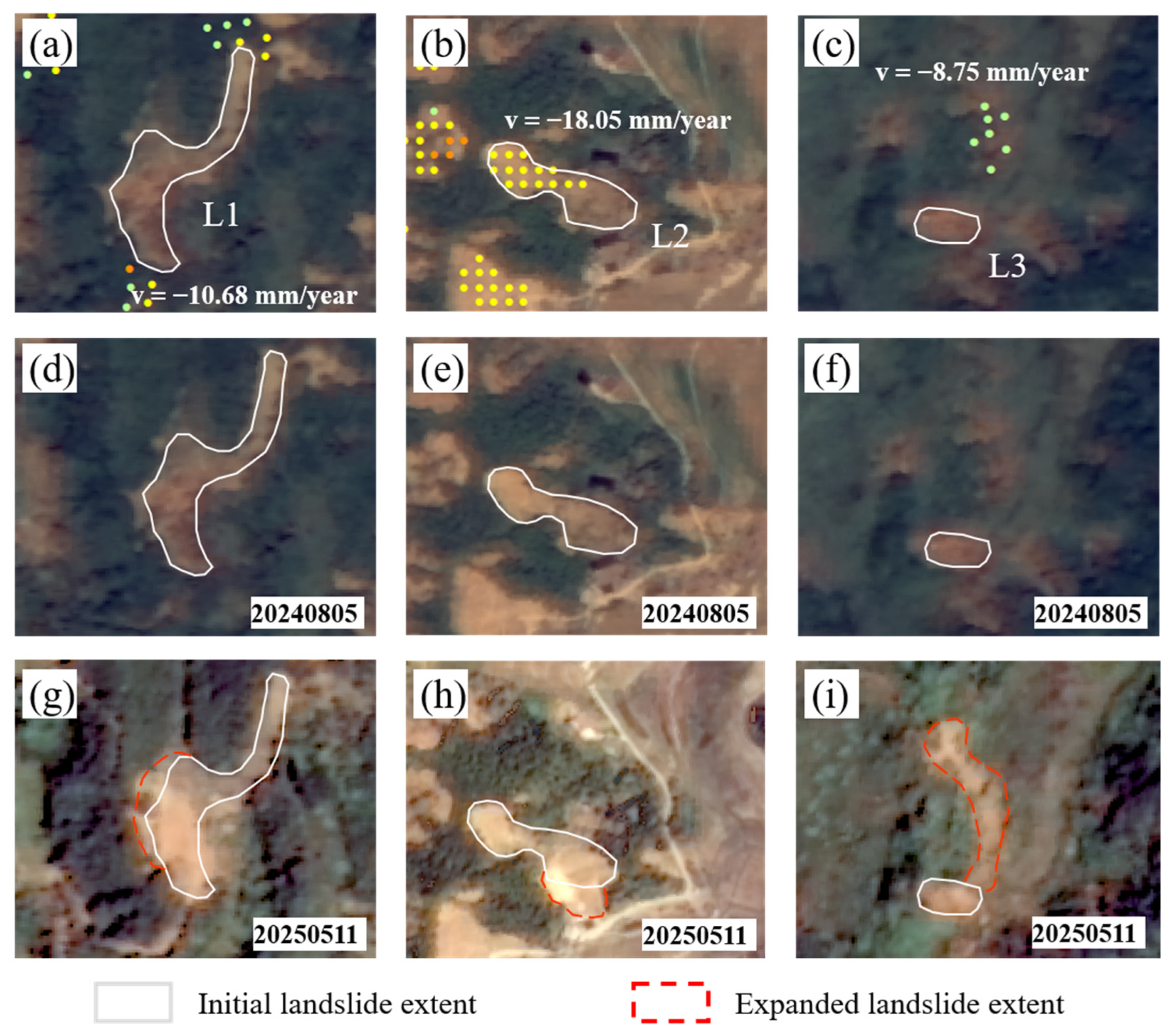 3.3. Landslide Assessment Using InSAR Results