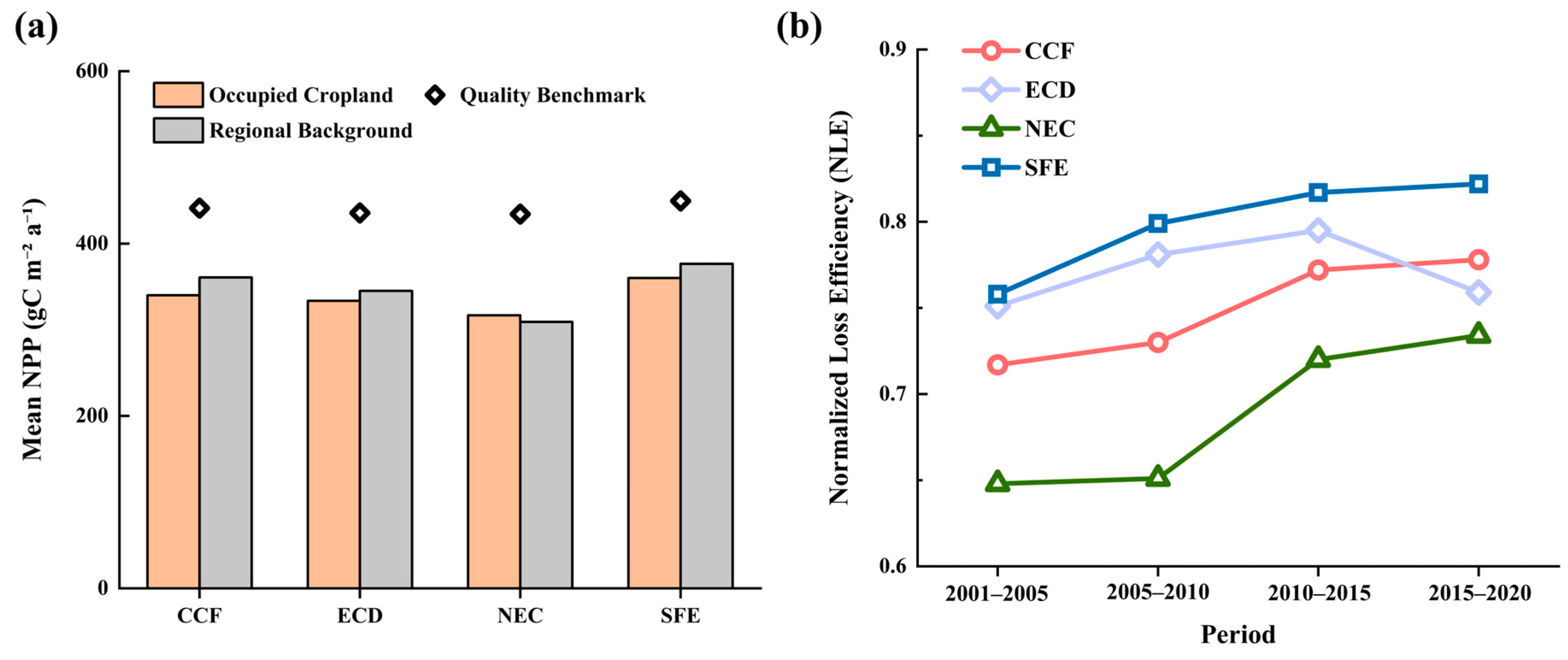 | Functional Zone | Quality Benchmark | Zone Cropland Mean NPP | Normalized Loss Efficiency (NLE) | |||