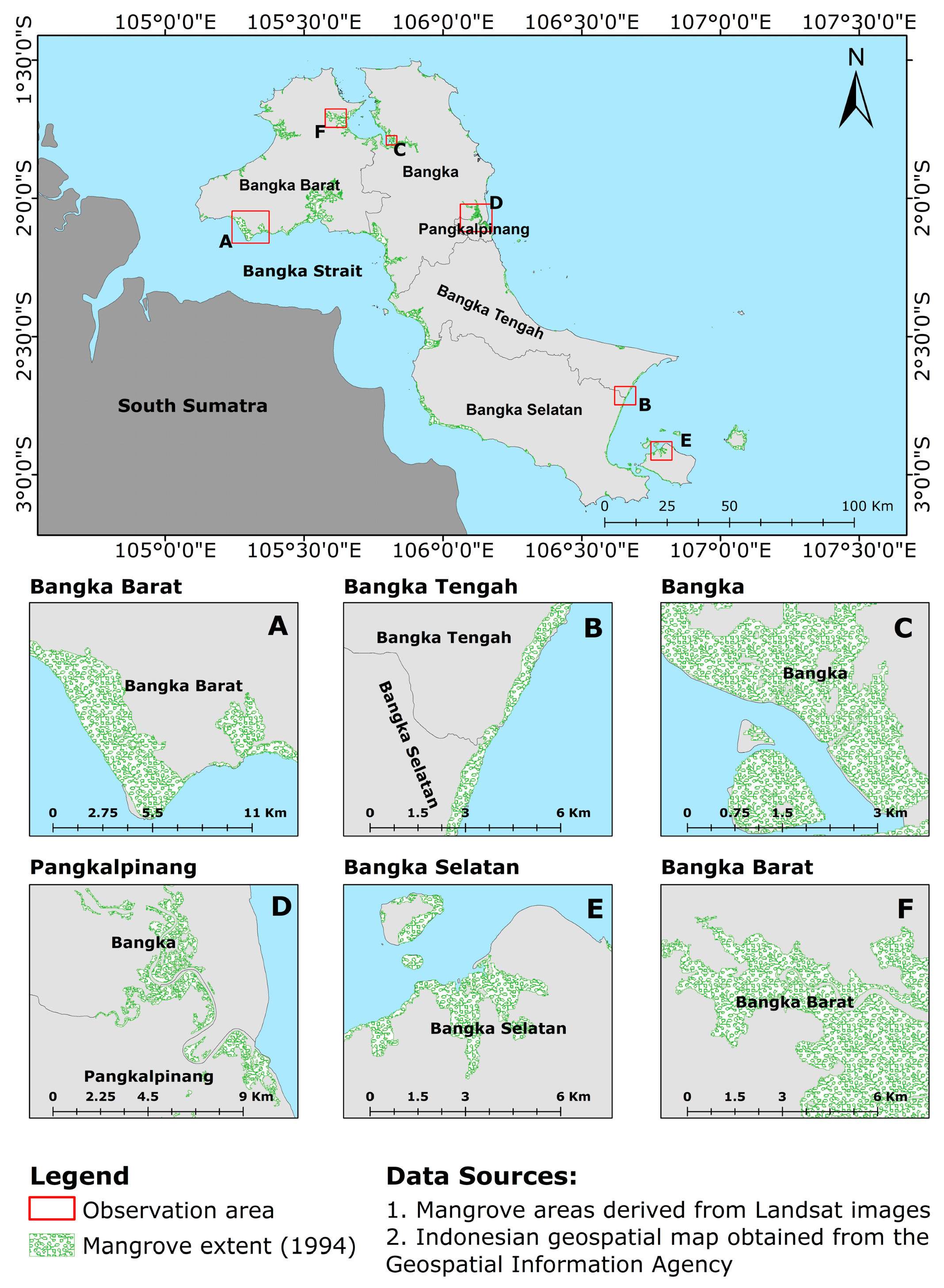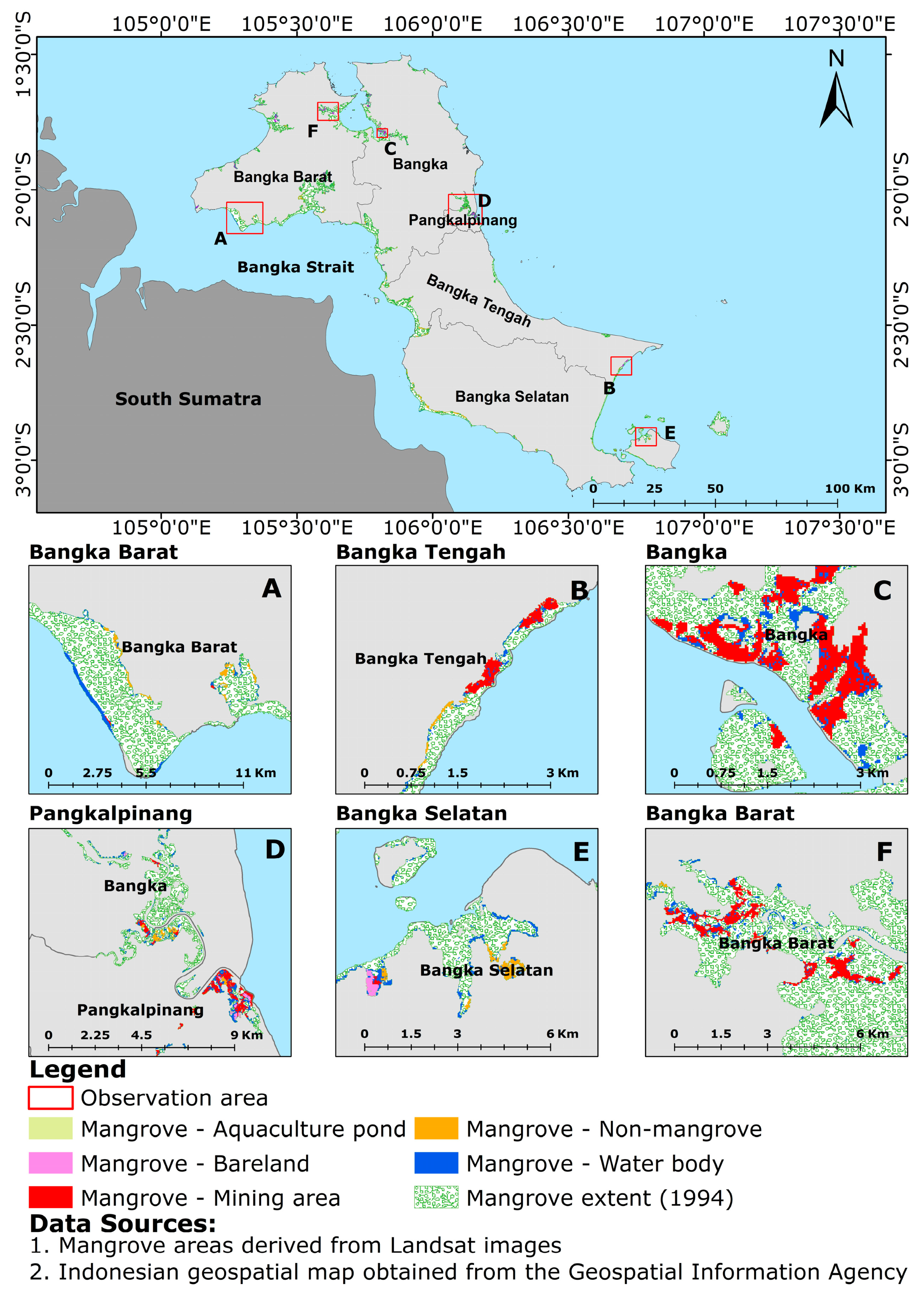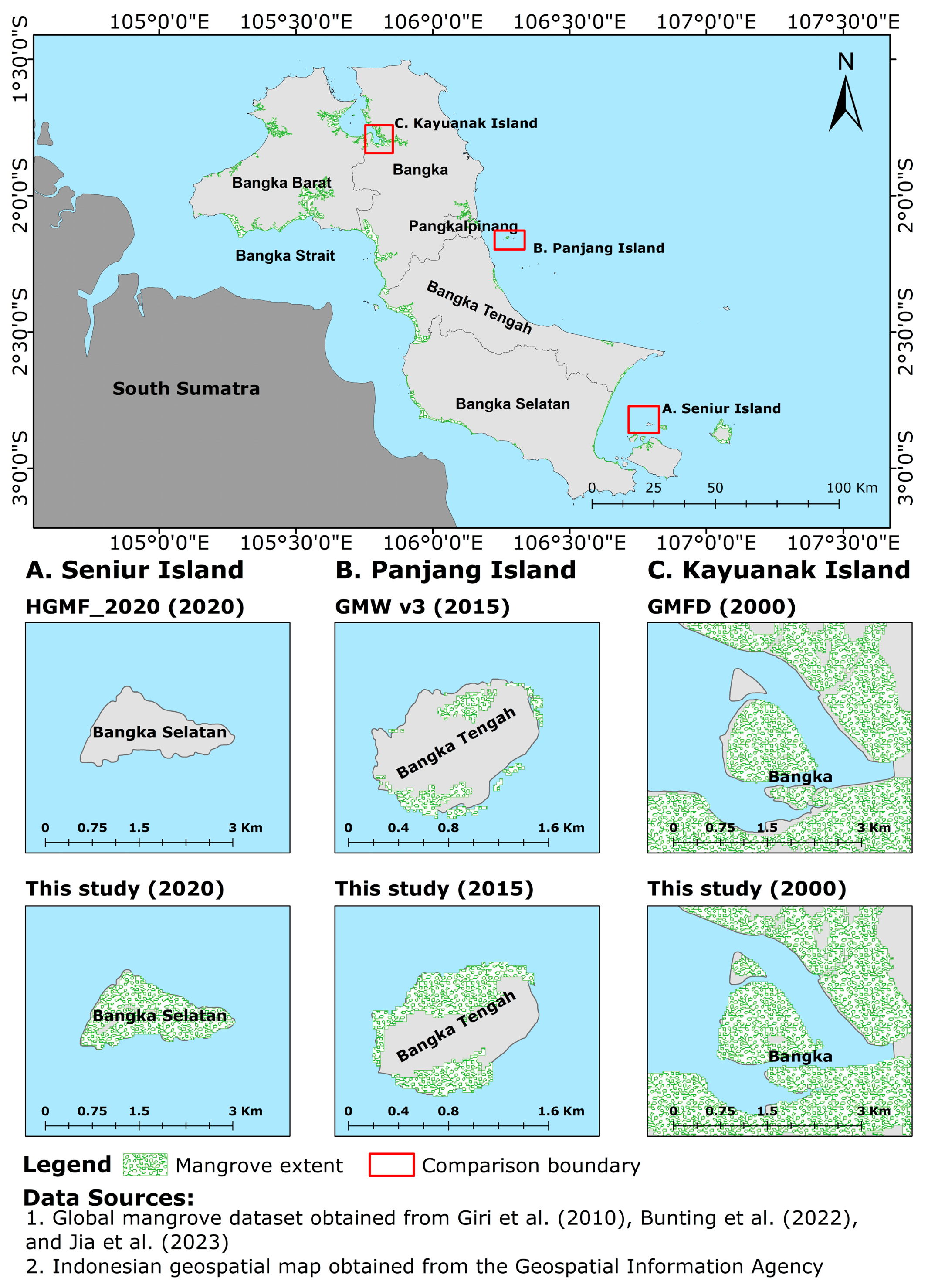 Previous studies on mangrove mapping in Bangka and nearby islands have generally been conducted at local scales or for limited observation periods [