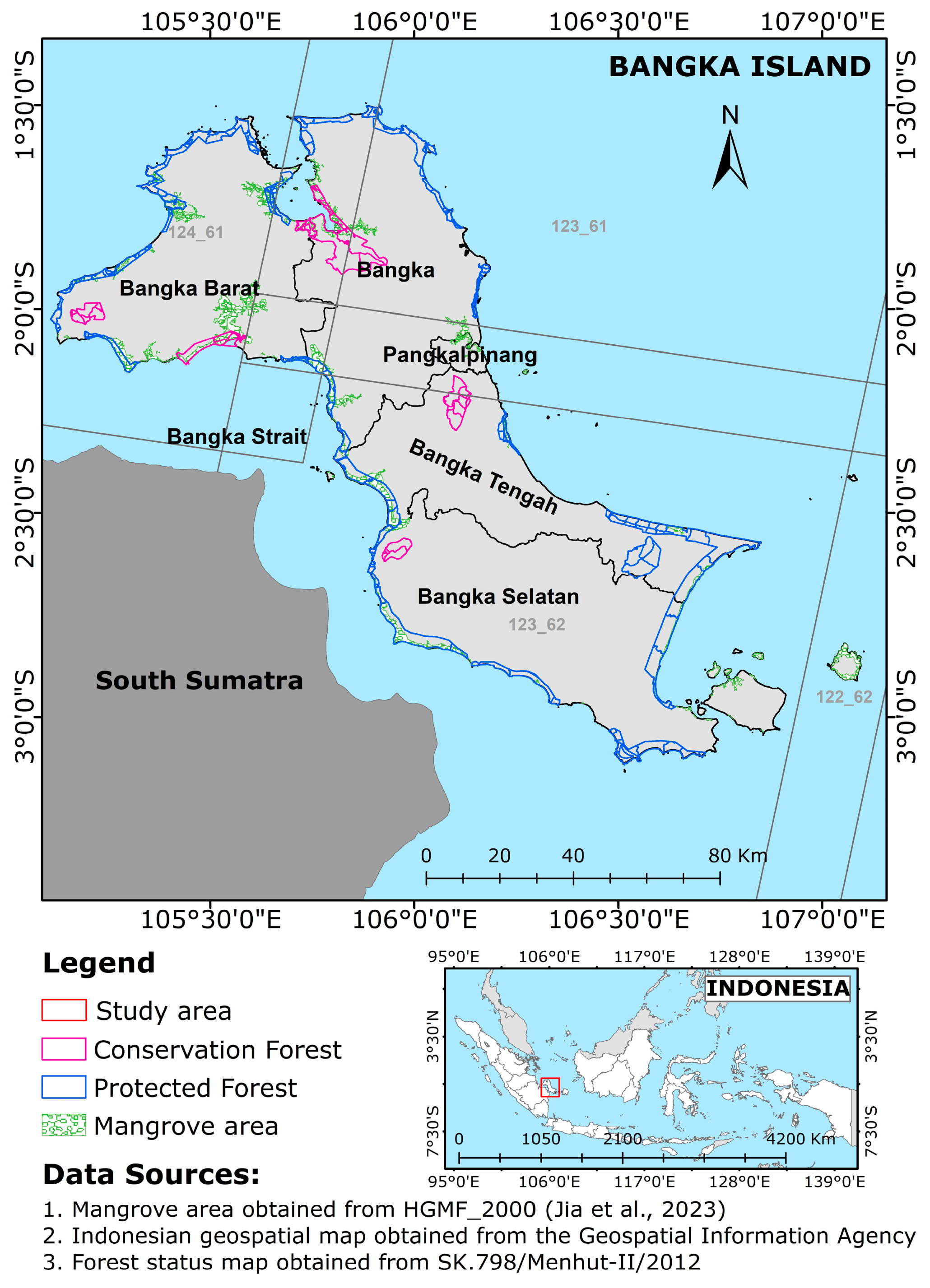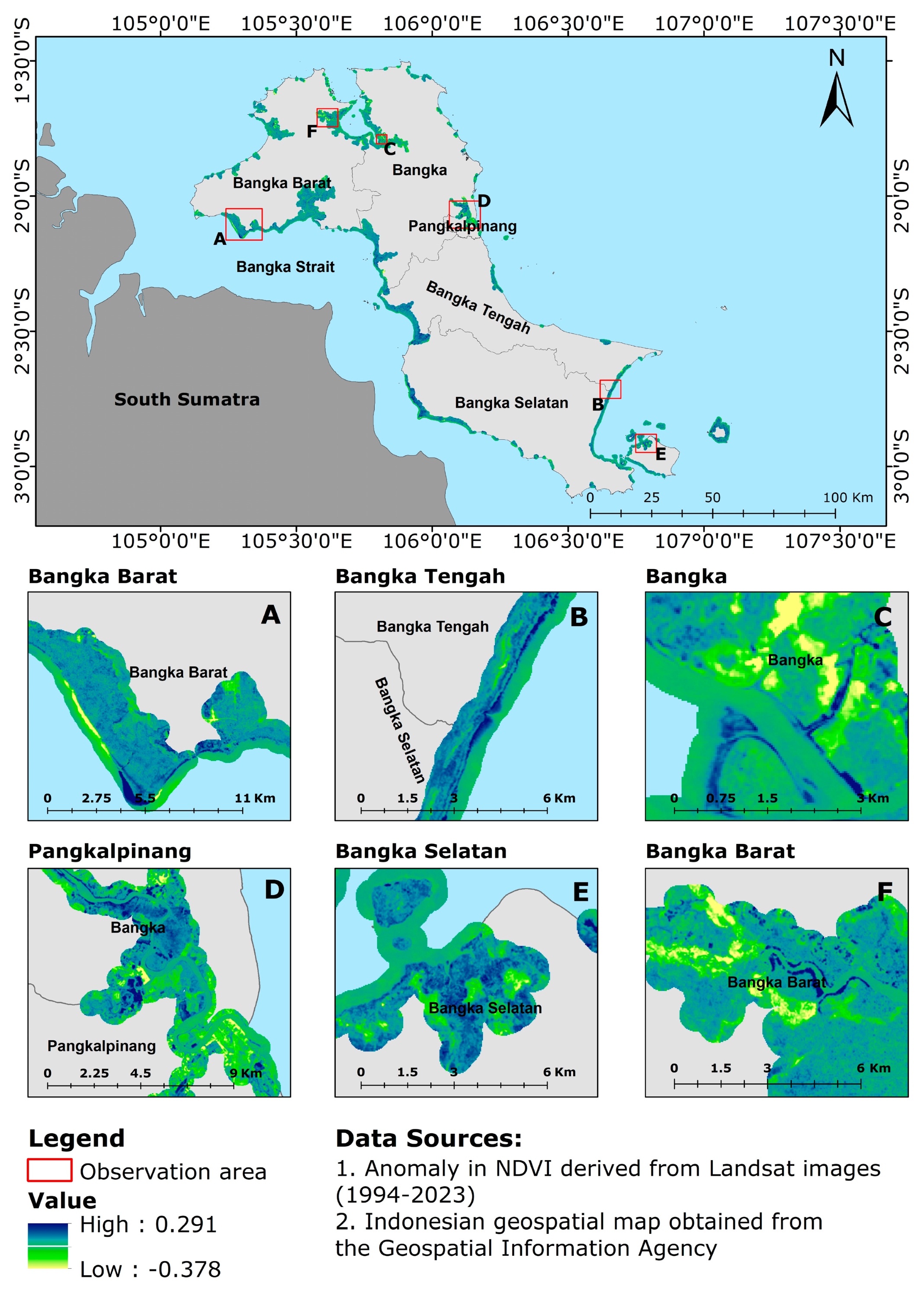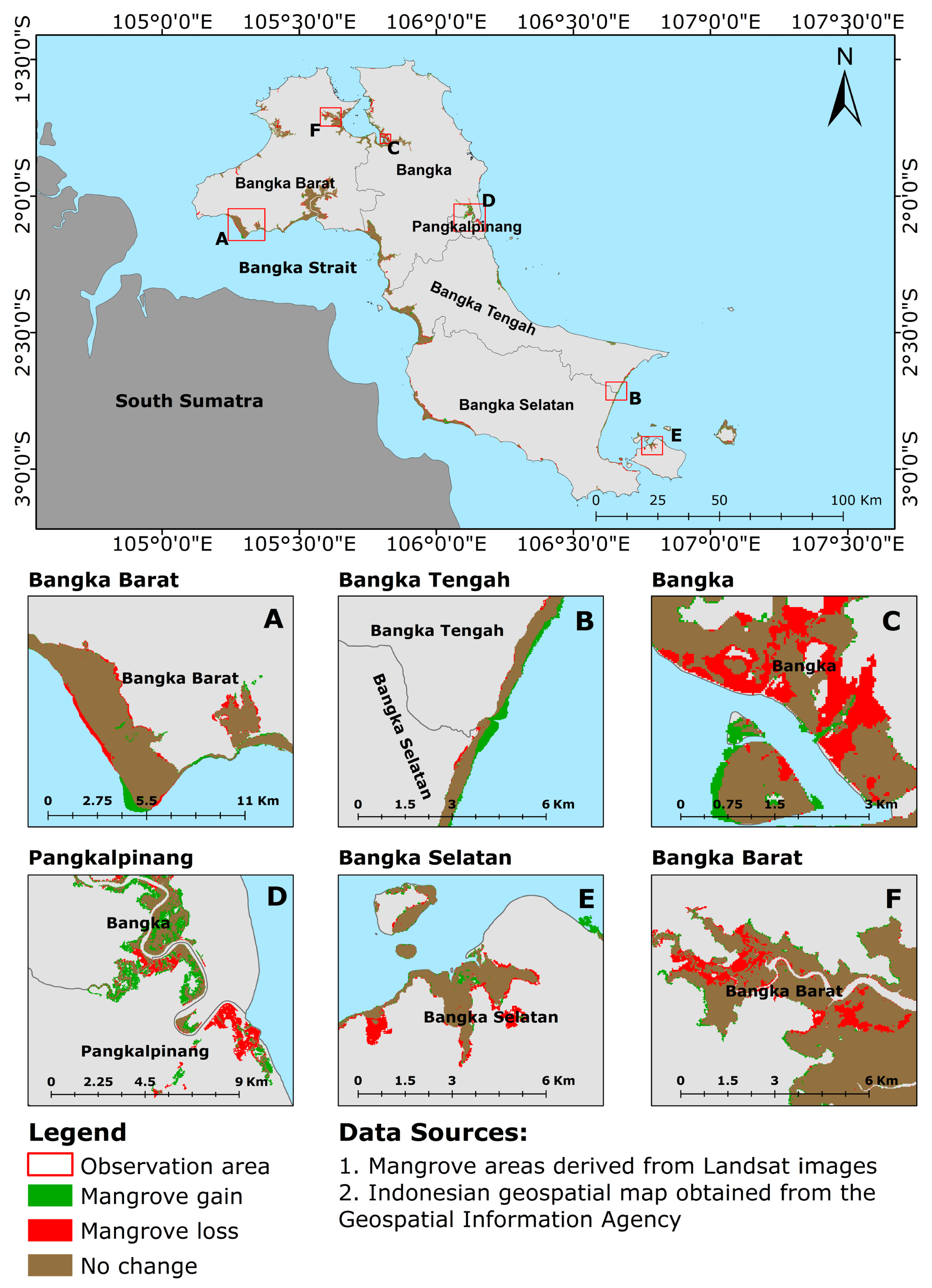 Previous studies on mangrove mapping in Bangka and nearby islands have generally been conducted at local scales or for limited observation periods [