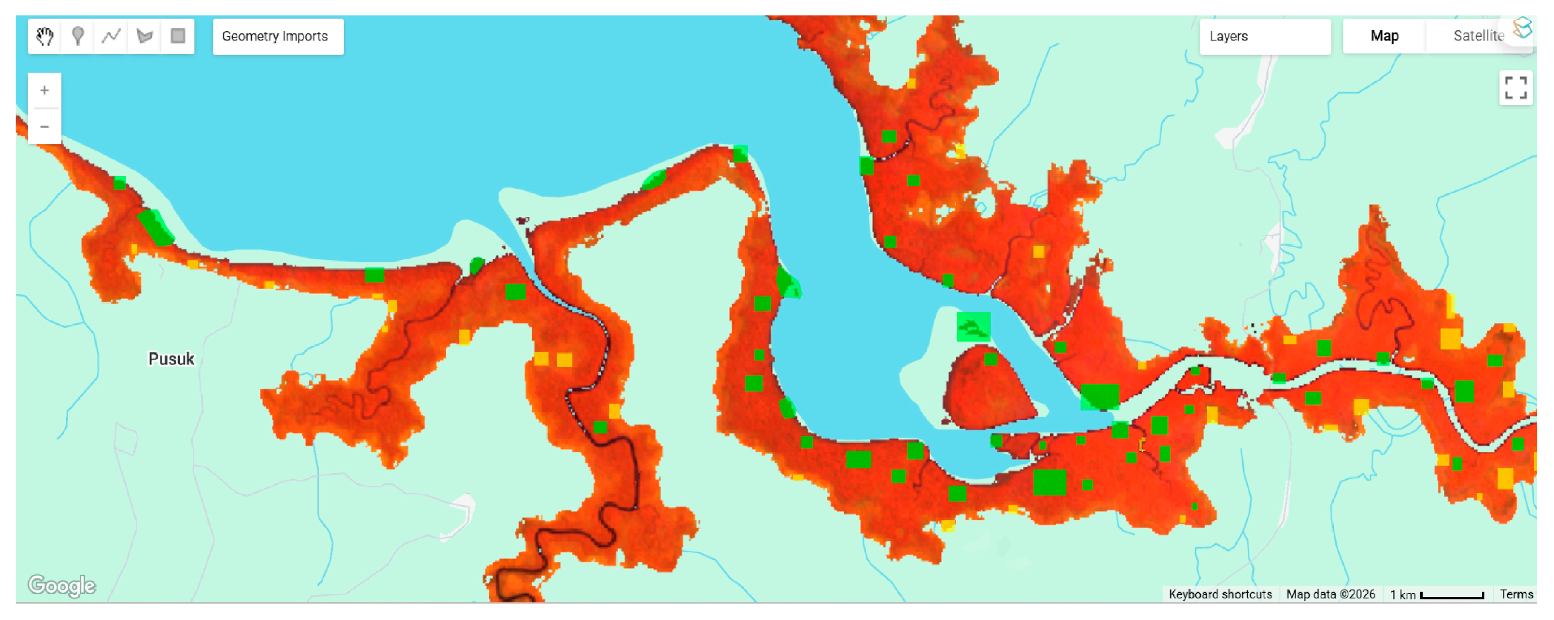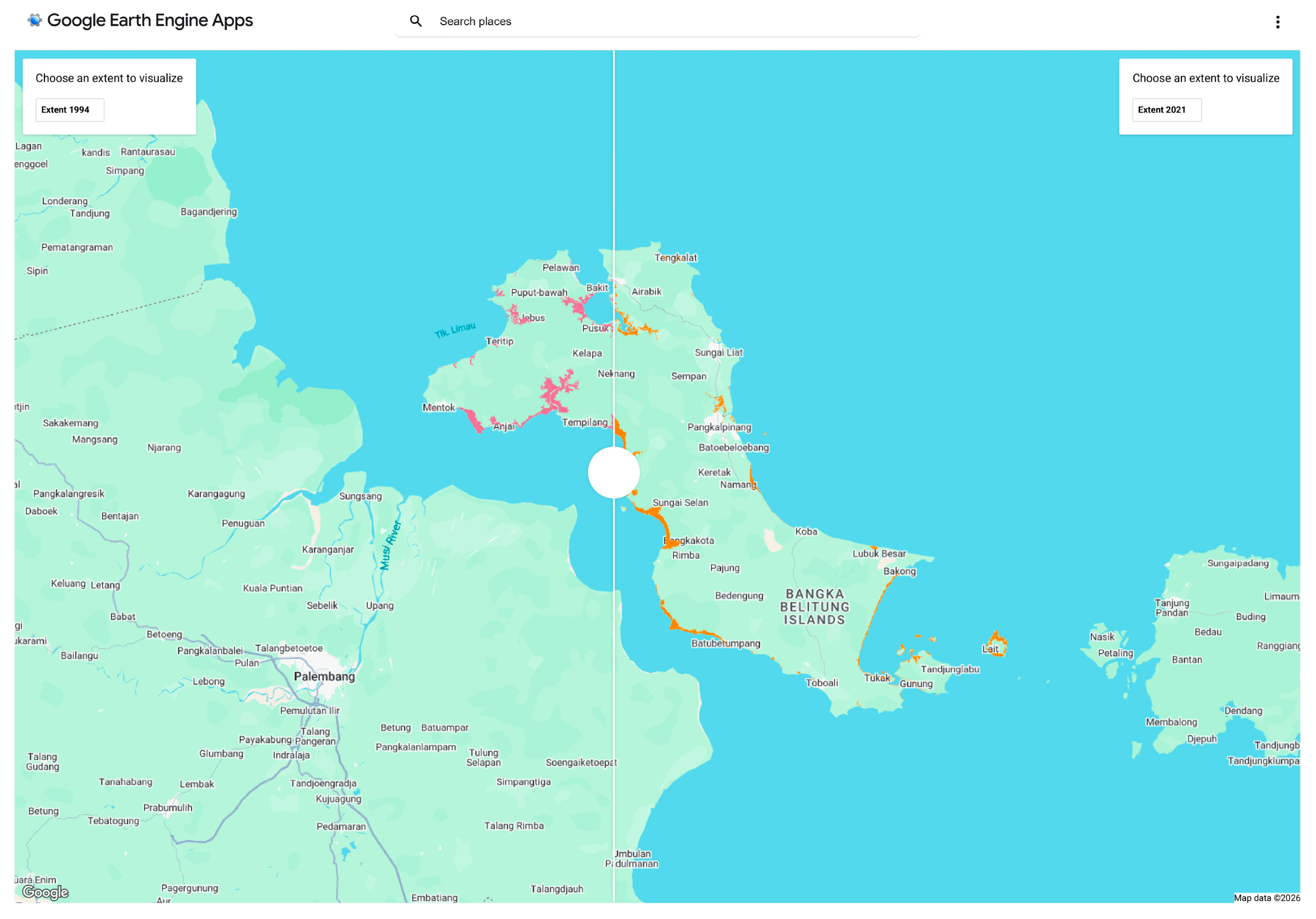 https://sucipuspita1332.users.earthengine.app/view/mangrovebangka (accessed on 30 January 2026) for Mangrove Bangka Map 1 and