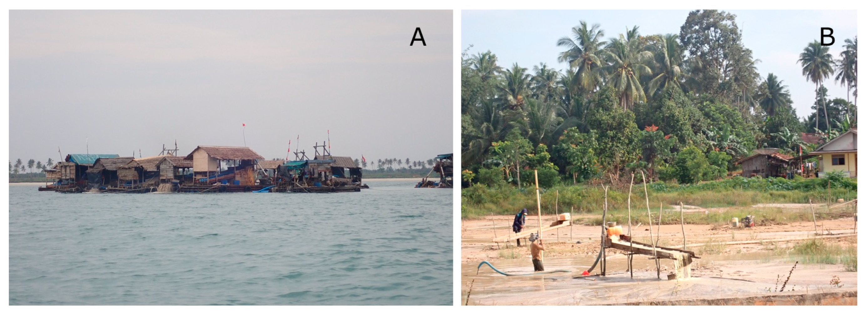 On Bangka Island in the Bangka Belitung Province, extensive mangrove loss has been driven by human activities, including the conversion of mangroves for shrimp ponds, settlements, and cumulative small-scale tin mining enterprises [