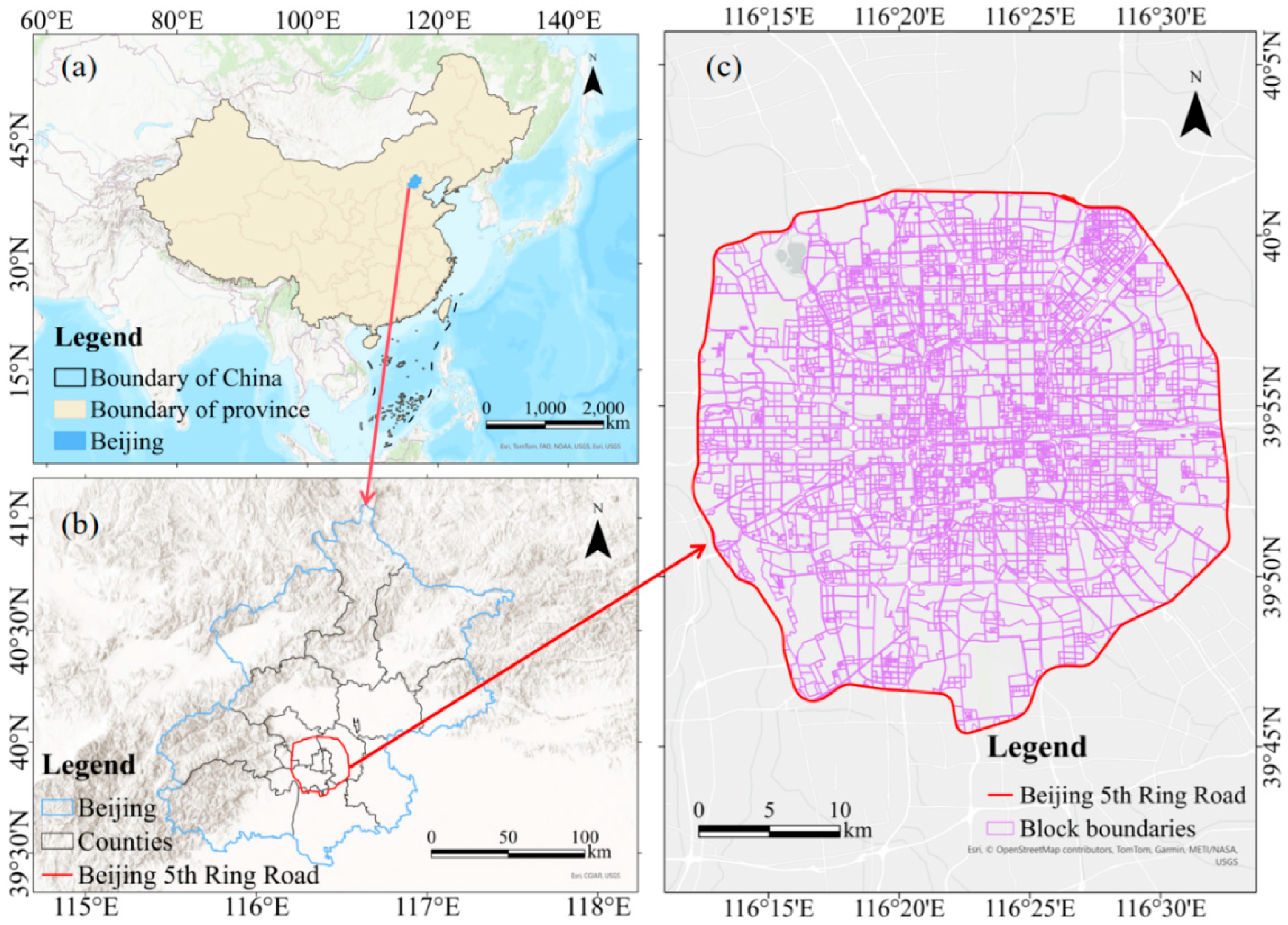 | AOI; POI | OSM map | 1 m | https://www.openstreetmap.org (accessed on 4 August 2025) | 1 January 2021 | Calculation of urban functional factors | AOI, POI |