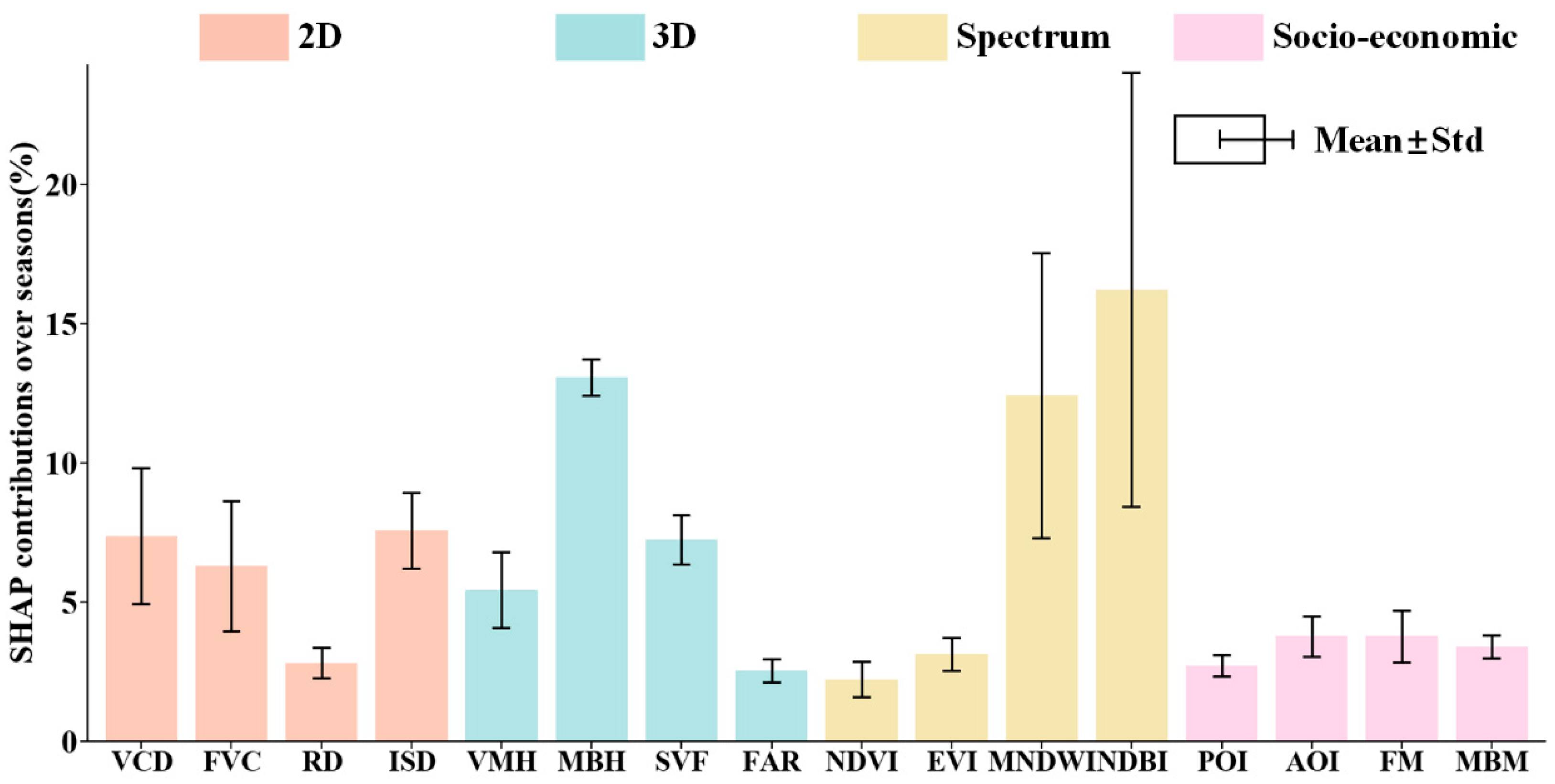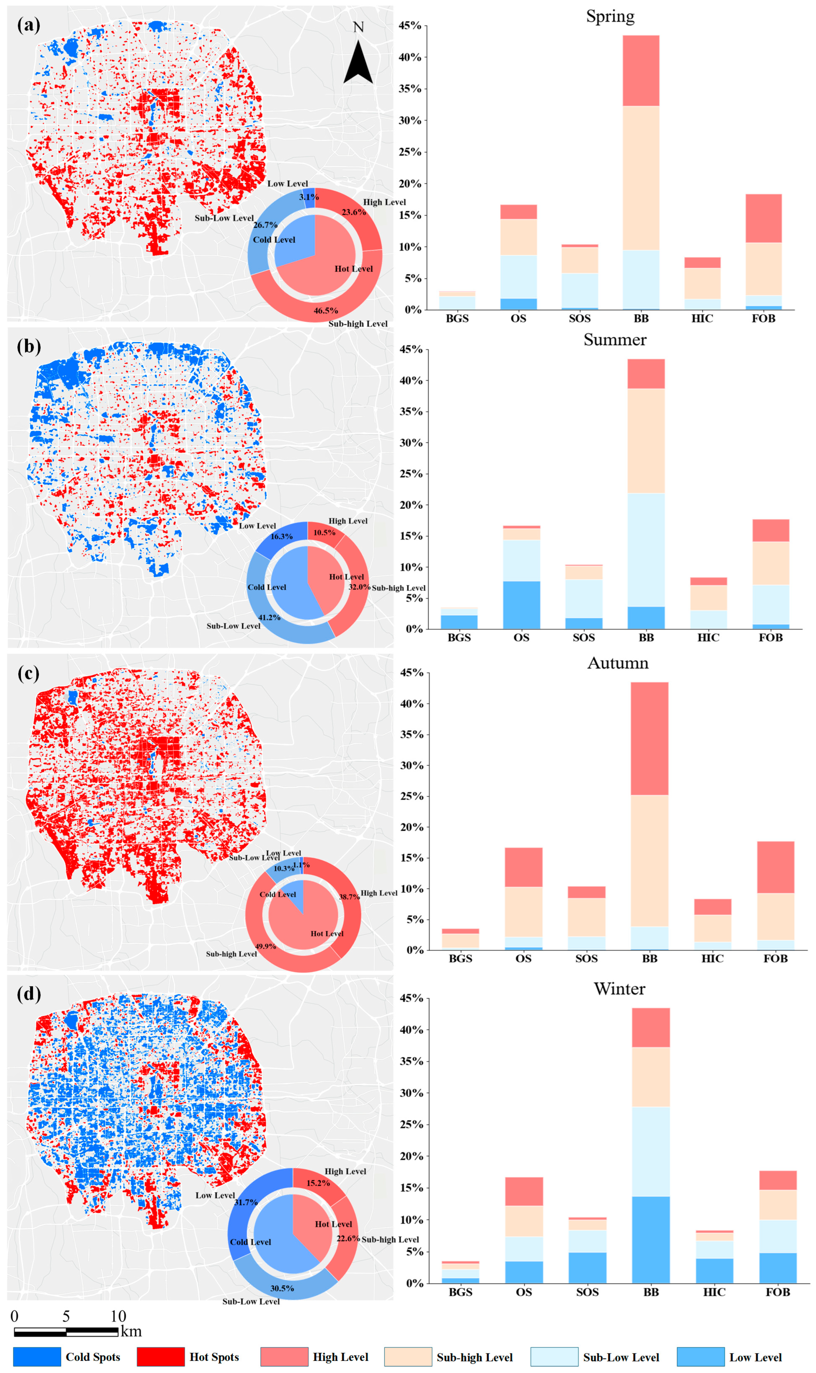 4.3. Block-Scale LST Driving Forces Across Different Seasons