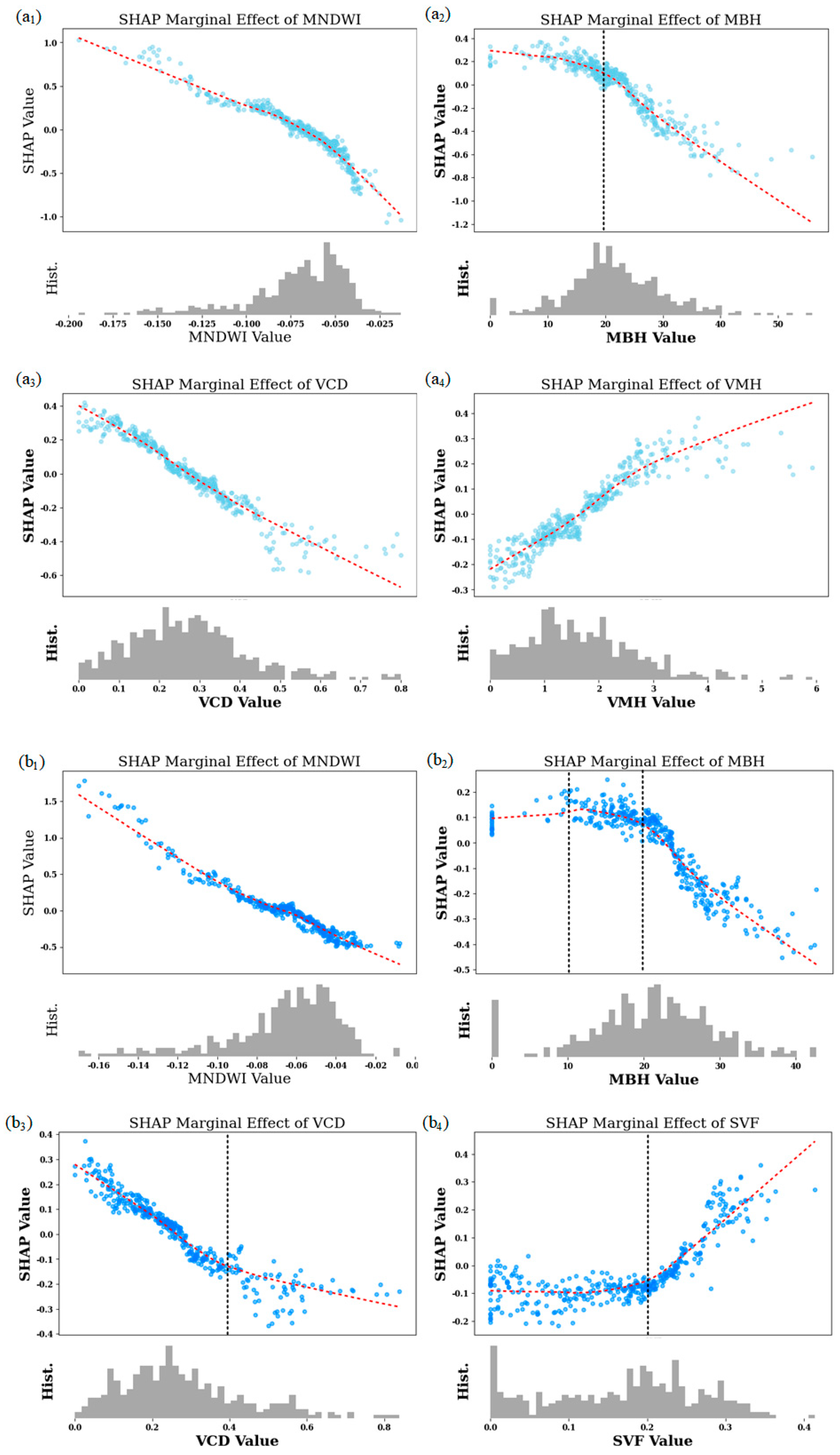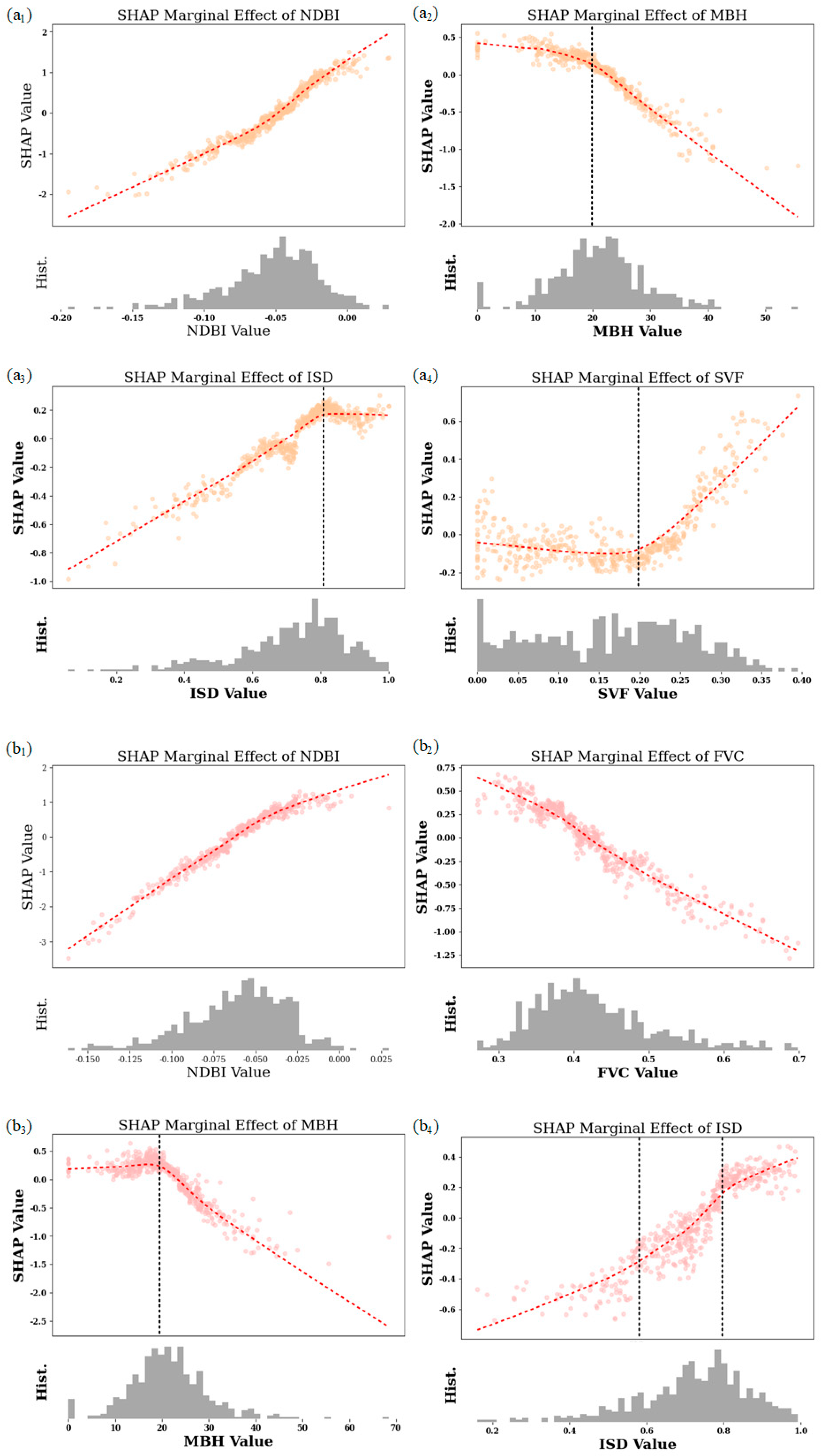 - Zhao, J.; Guo, F.; Zhang, H.; Dong, J. Mechanisms of non-stationary influence of urban form on the diurnal thermal environment based on machine learning and MGWR analysis. Sustain. Cities Soc. 2024, 101, 105194. [Google Scholar] [CrossRef]