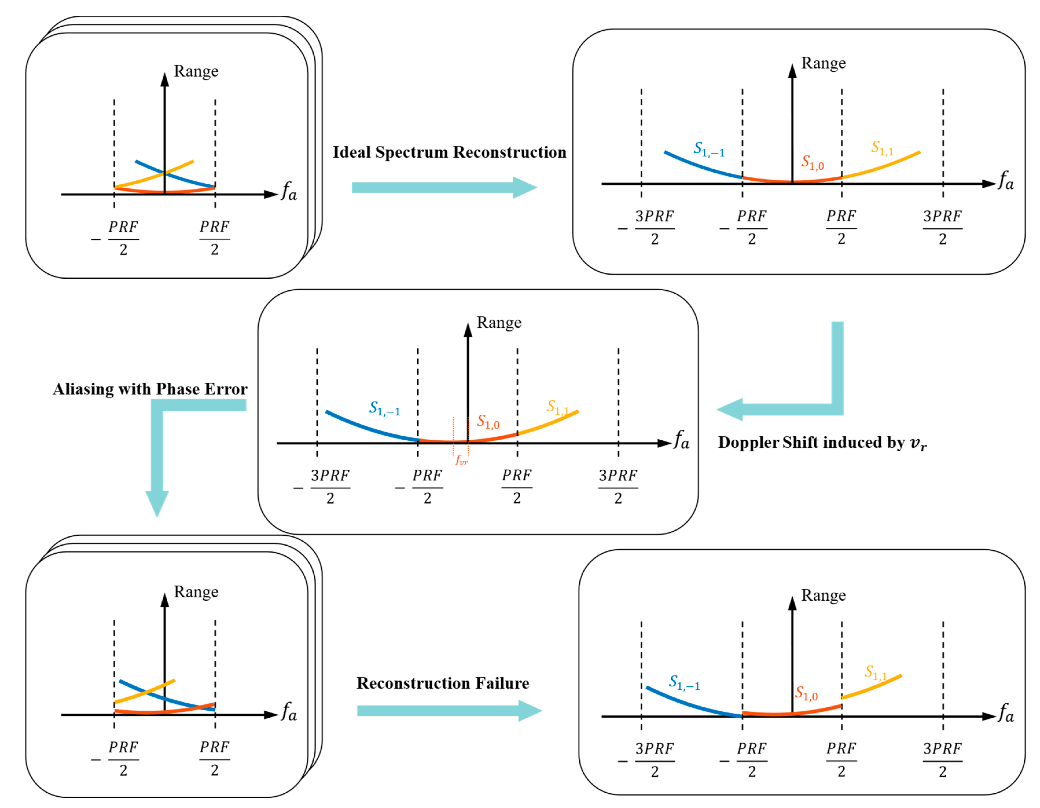 Figure 4. Schematic illustration of the spectrum reconstruction failure mechanism induced by non-cooperative target motion.