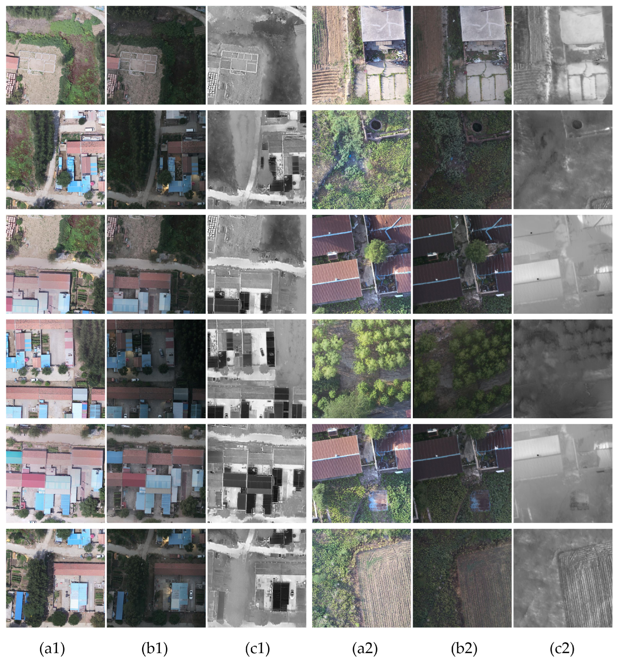 The experimental data in this paper are mainly from UAV images collected in Xianghe County, Hebei Province. Although the scenes include typical ground object types such as roads, buildings, vegetation and water bodies, the overall regional scope is still relatively limited and does not cover more regional differences and complex surface types. To further verify the applicability of the method under different scene conditions, a comparative experiment is supplemented in the experimental part using UAV image data collected in the suburban area of Hancheng Town, Tangshan. In addition, among the currently publicly available UAV visible–thermal infrared multimodal datasets, data resources with cross-temporal acquisition, natural spatial offset and weakly paired characteristics are still relatively limited, which limits the systematic comparative verification across regions or datasets to a certain extent. Future research will further expand the data collection regions and scene types, and verify the generalization ability of the method under more data conditions.
