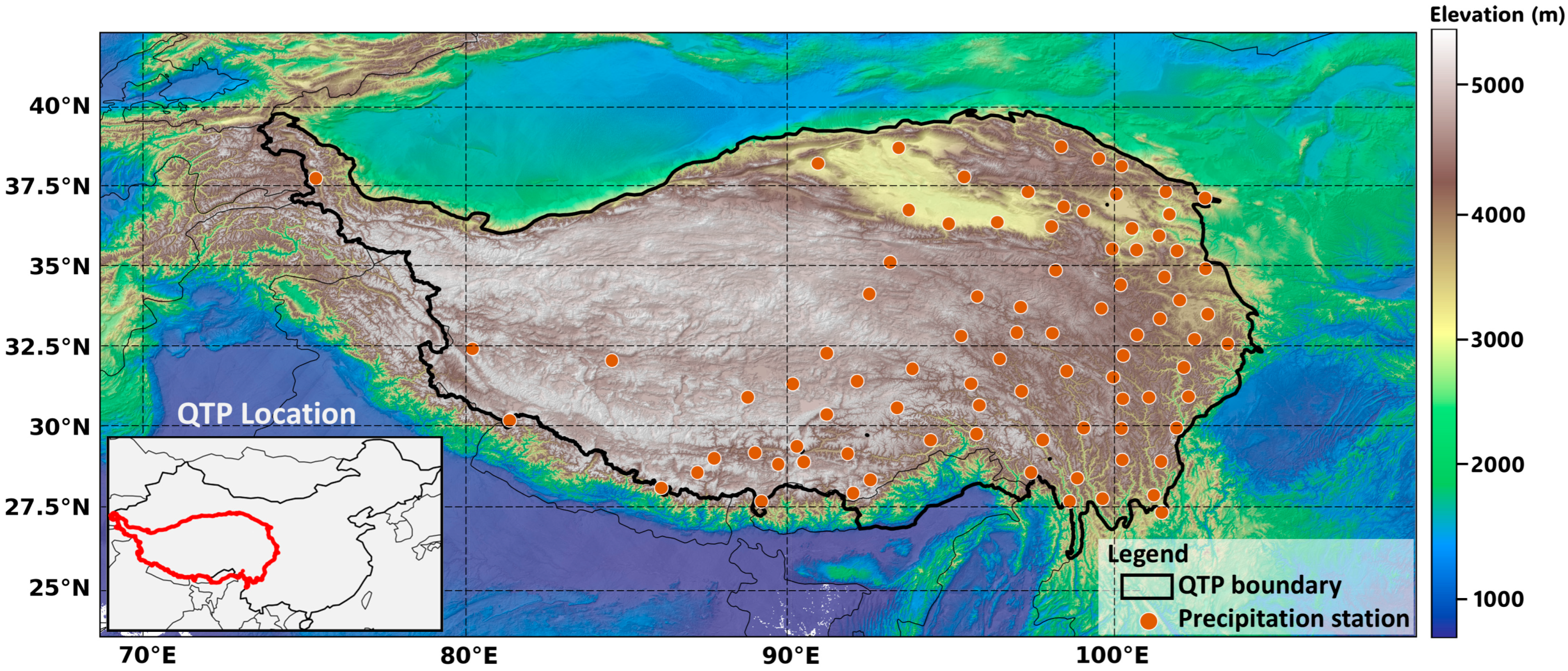 6]. Because precipitation is closely linked to cryospheric processes, changes in its amount and timing can lead to amplified environmental and hydrological impacts over the Plateau. This makes the QTP particularly sensitive to climate change [