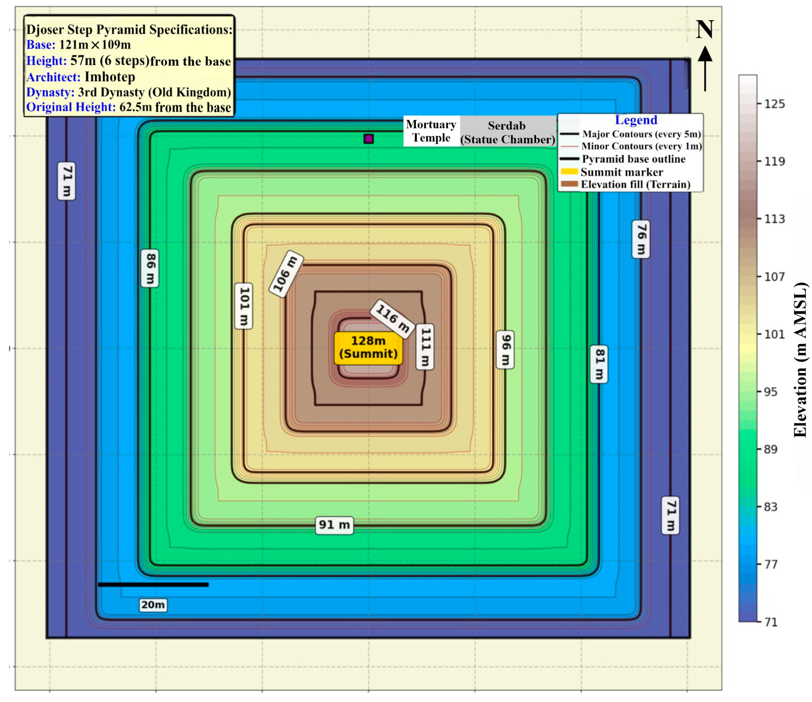 | Djoser | 0.2 | ~24.3 | Stepped terraces, tier deformations, casing stone erosion patterns |