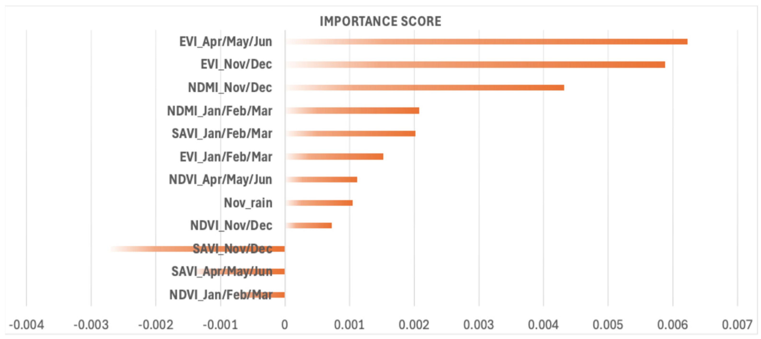 - EVI is the most important feature in the yield prediction framework.