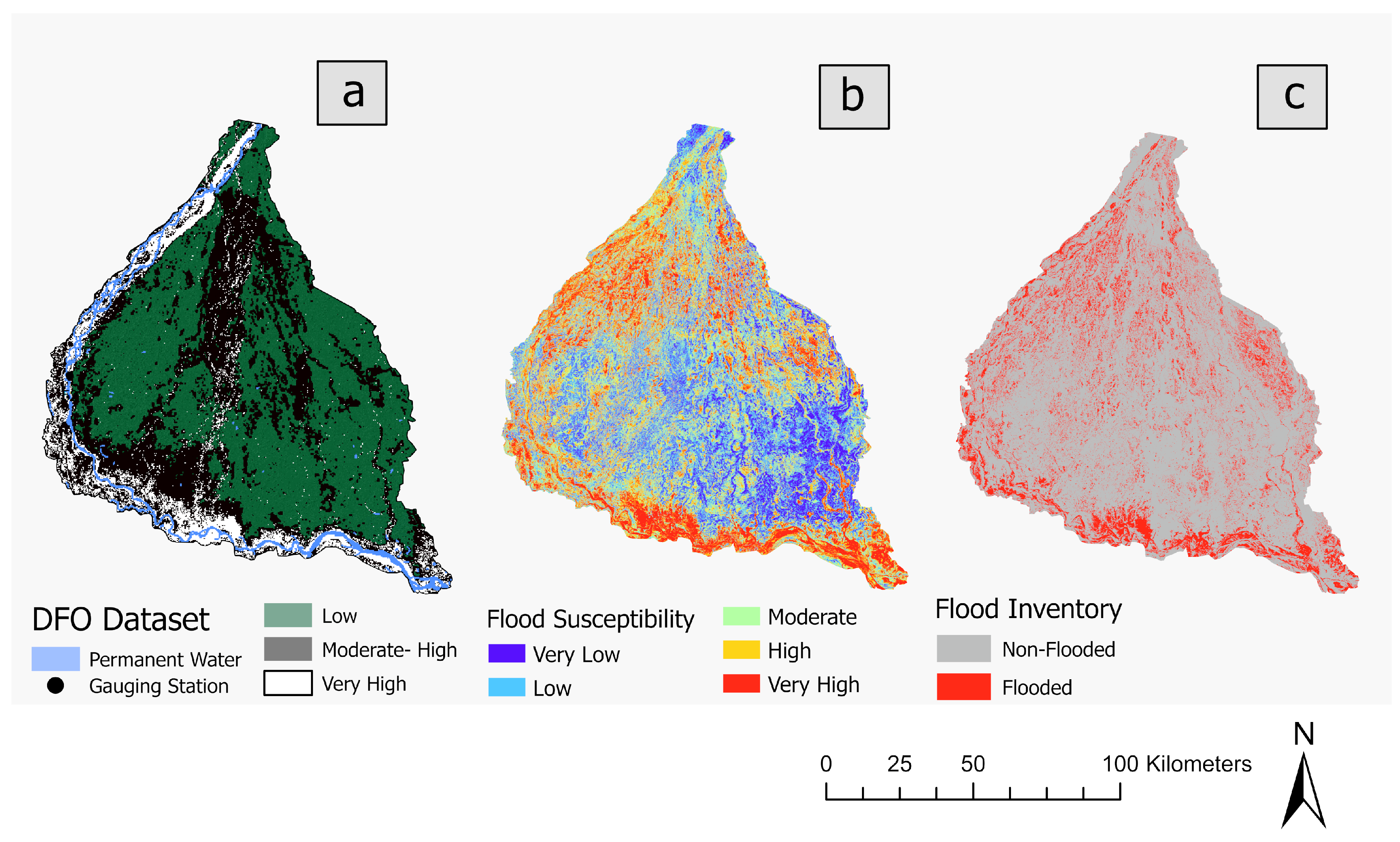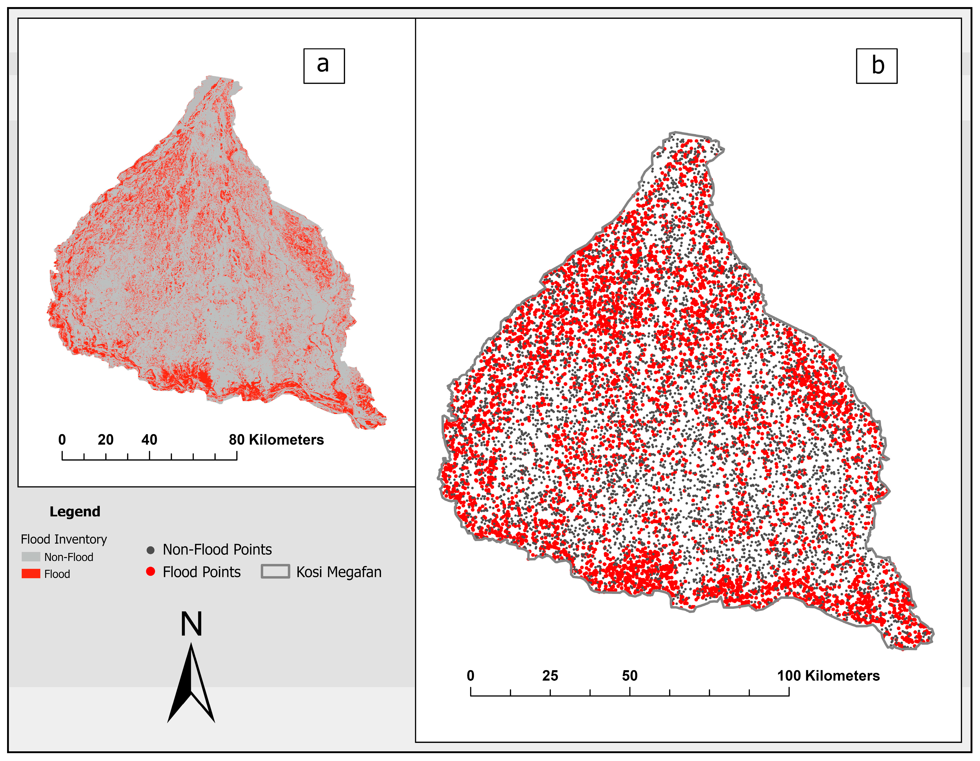 - Khan, K.M.; Wang, B. Dataset for “Flood Susceptibility Mapping of the Kosi Megafan Using Ensemble Machine Learning and SAR Data”; Zenodo: Geneva, Switzerland, 2026. [Google Scholar]