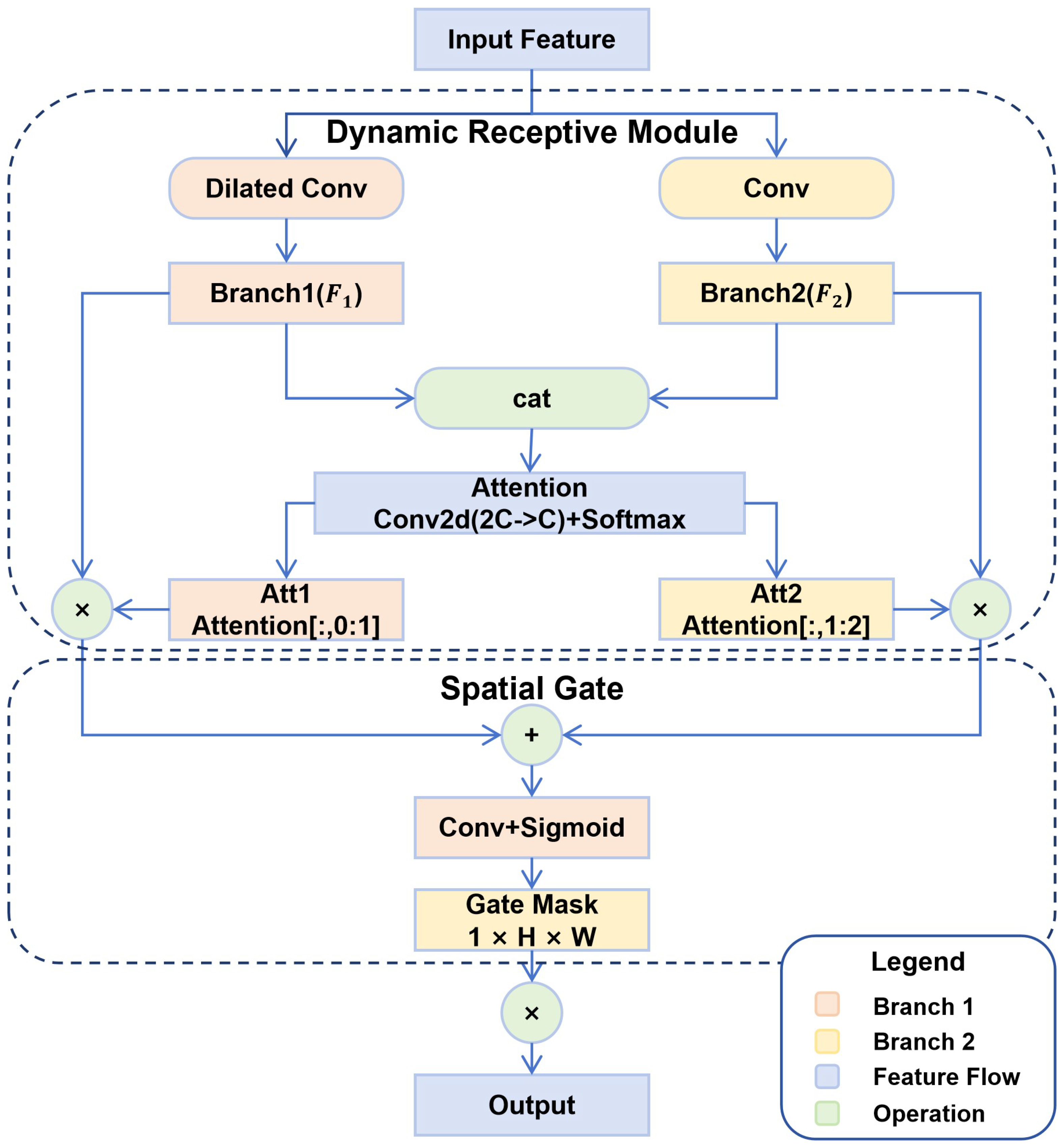 Figure 2, this module achieves this goal through a dual mechanism combining the Dynamic Receptive Module and Spatial Gating.