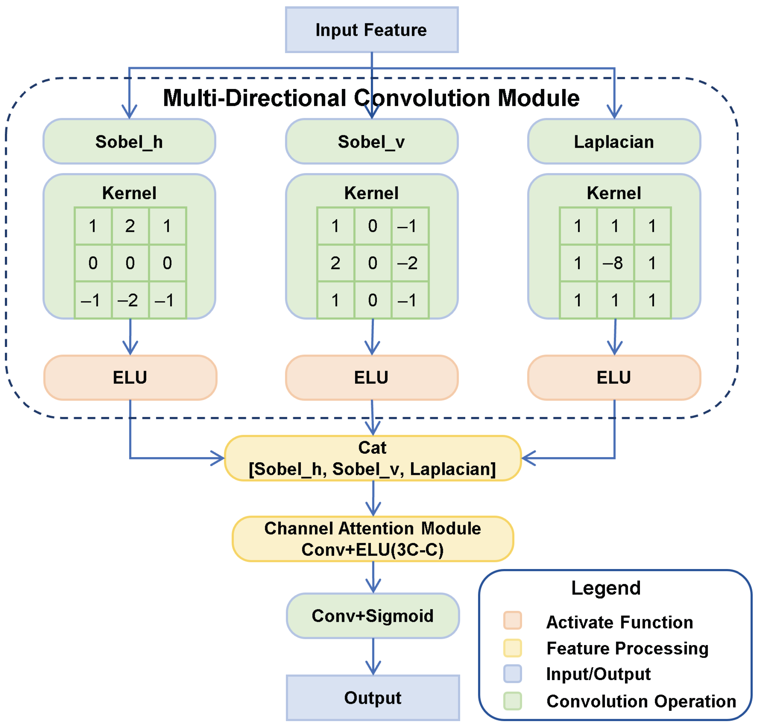 To provide high-quality input to both branches, a shared feature encoder enhances shallow features from the backbone. It is built from two sequential convolutional modules, where each module includes a convolution layer followed by batch normalization and an ELU activation function. The first module projects the backbone output from 32 to 64 channels to enrich feature representation, while the second refines the expanded features to improve spatial consistency. This two-layer design strikes a balance between representational capacity and computational efficiency: a single layer is insufficient to bridge the gap between the backbone output and the task-specific branches, while deeper stacking would introduce unnecessary parameters without meaningful performance gain.