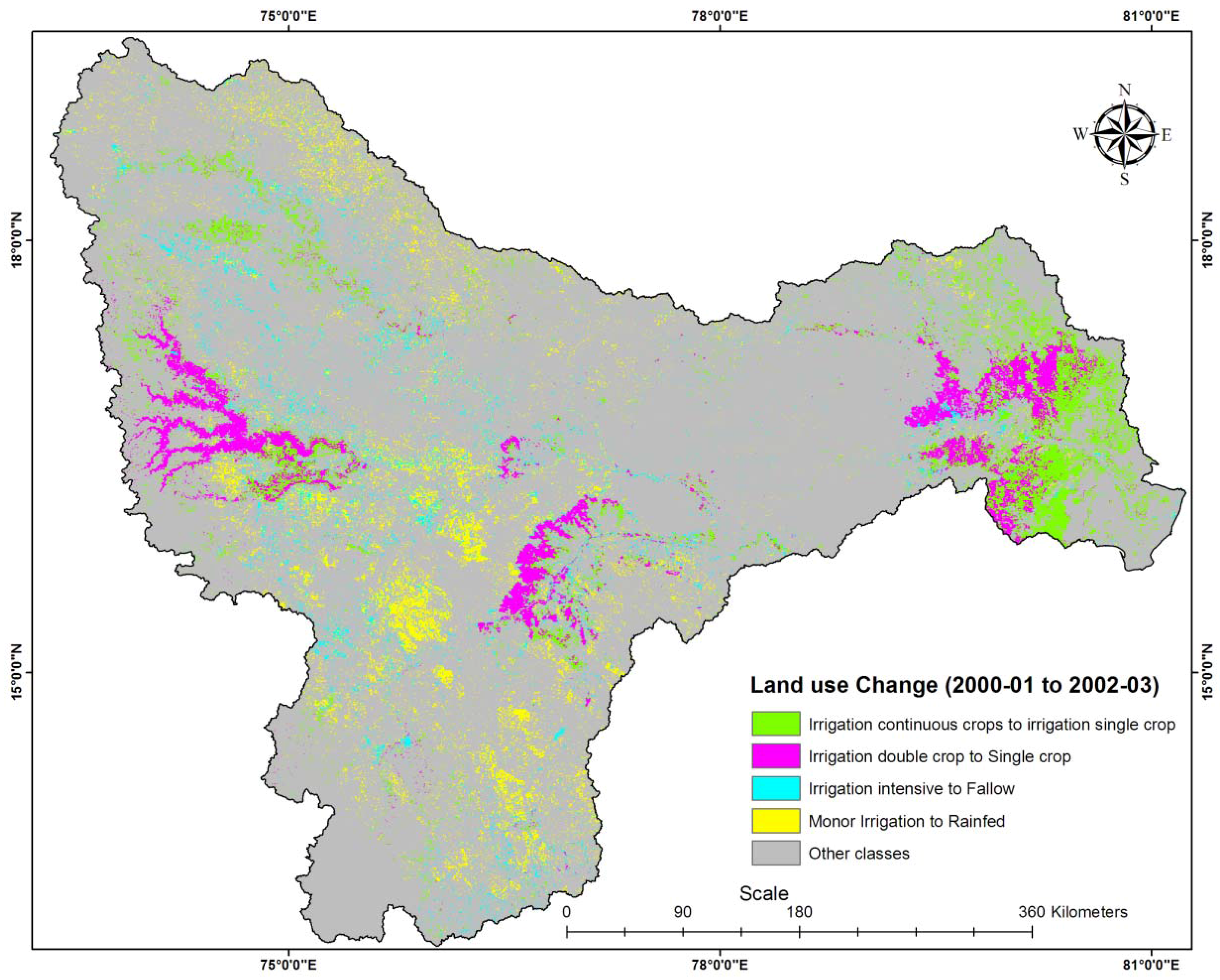 - Gumma, M.K.; Thenkabail, P.S.; Gangadhara Rao, T.P.; Nalan, S.A.; Velpuri, M.N.; Biradar, C. Agriculture Cropland Change Response to Water availability using Spectral Matching Techniques in the Krishna River Basin (India) (Review). Int. J. Remote Sens. 2009, TRES-PAP-2009, 0162. [Google Scholar]