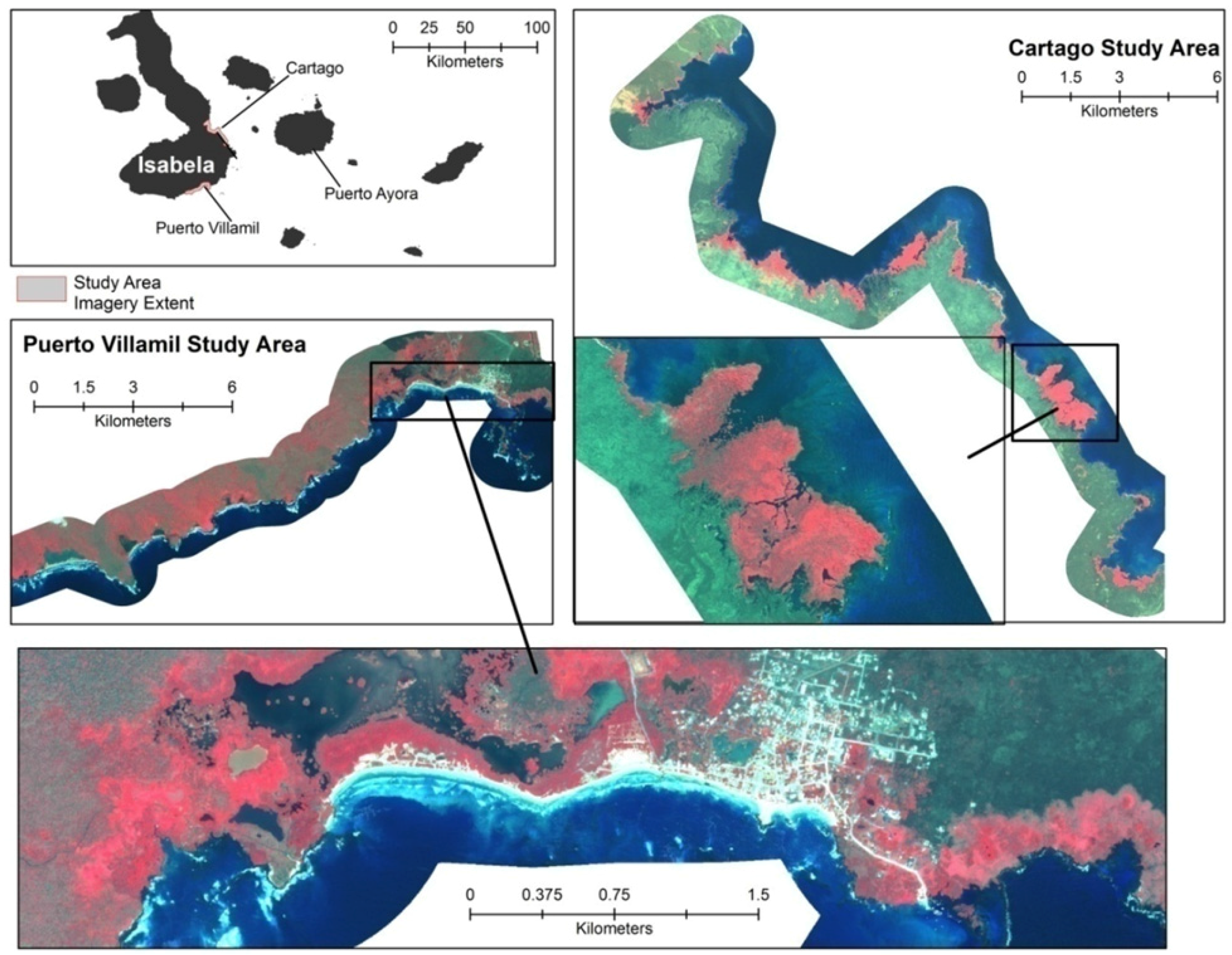 4]. Mapping and monitoring mangrove forests is critically important for numerous scientific areas such as carbon stock estimates of tropical coastal nations, effectively managing commercial fisheries and their mangrove nurseries, and understanding the dynamics of vegetation-coastal geomorphology and coastal hazard mitigation. Furthermore, mangroves can provide unique habitat for rare species such as the mangrove finch in the Galapagos Islands of Ecuador.