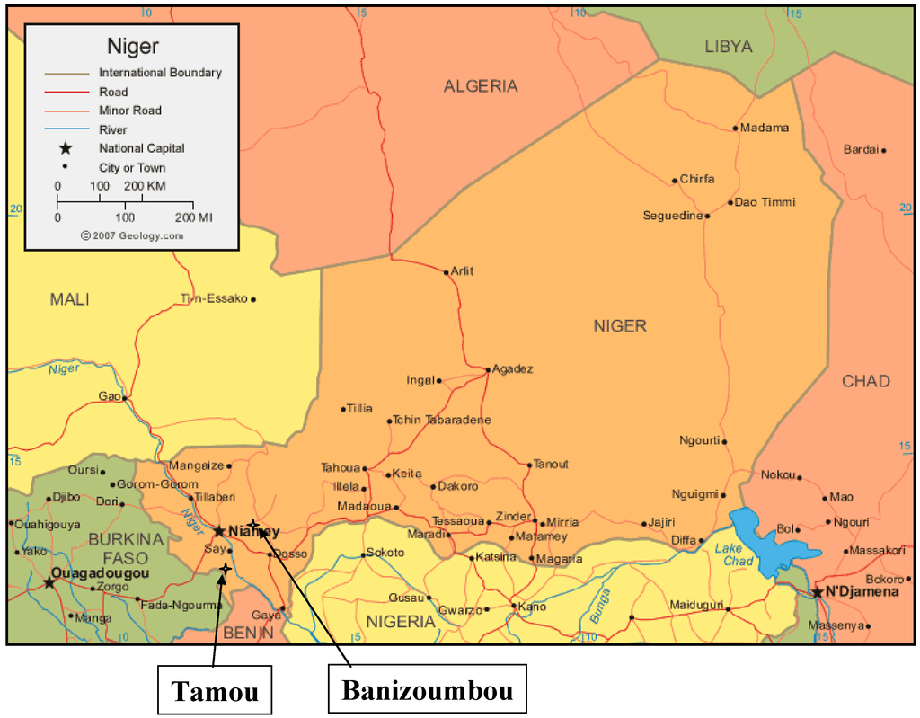Location of Banizoumbou and Tamou study sites in Niger.