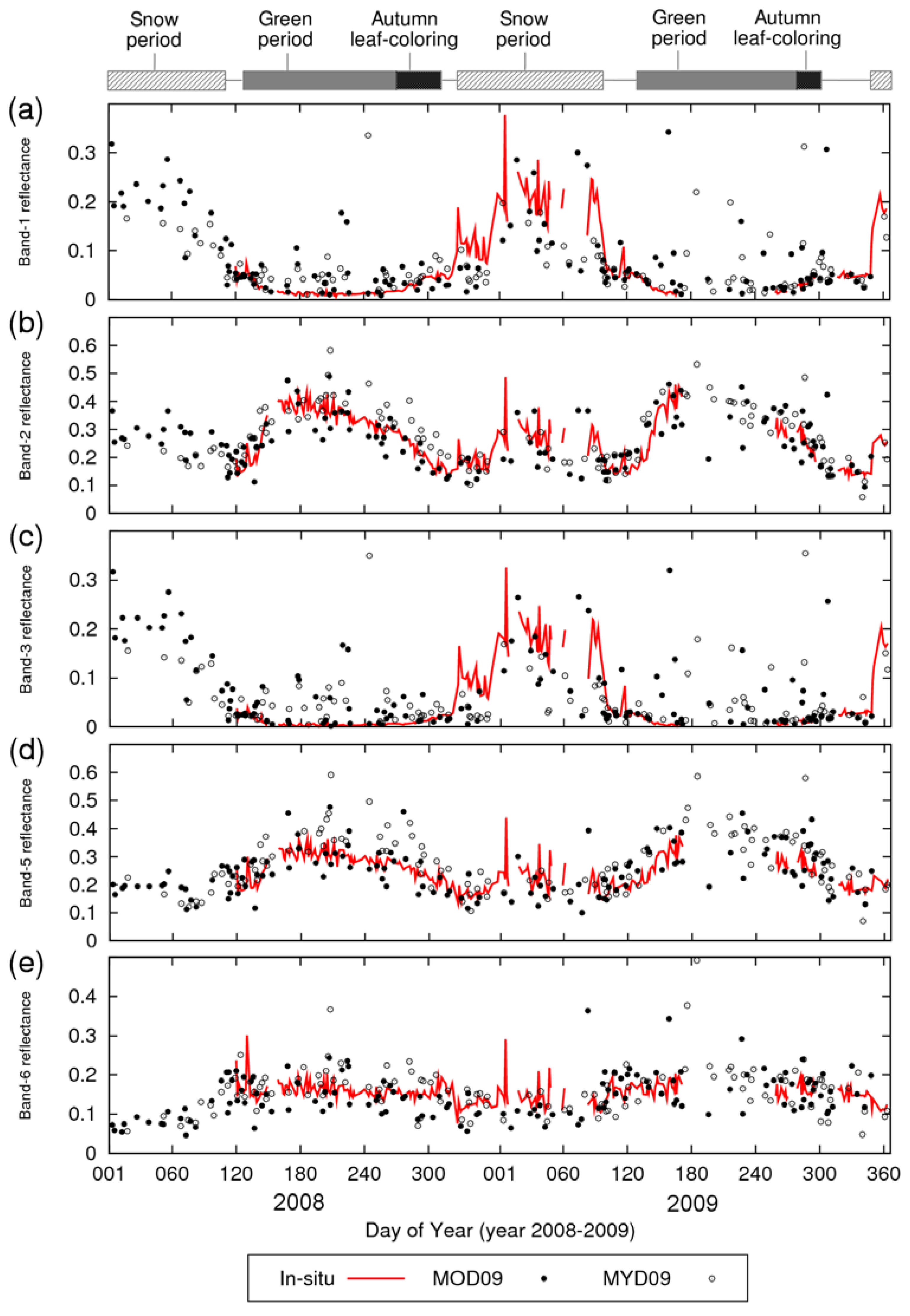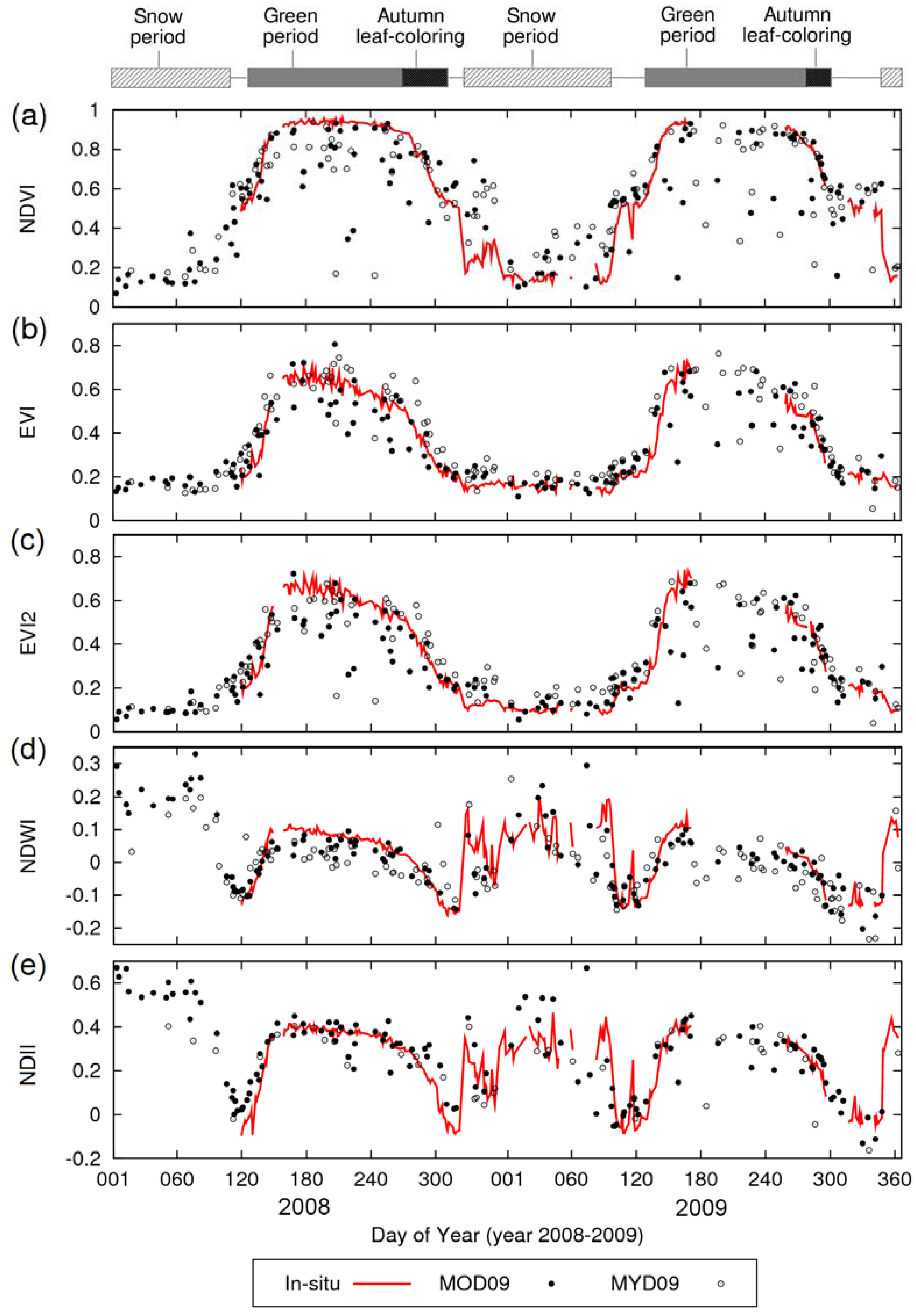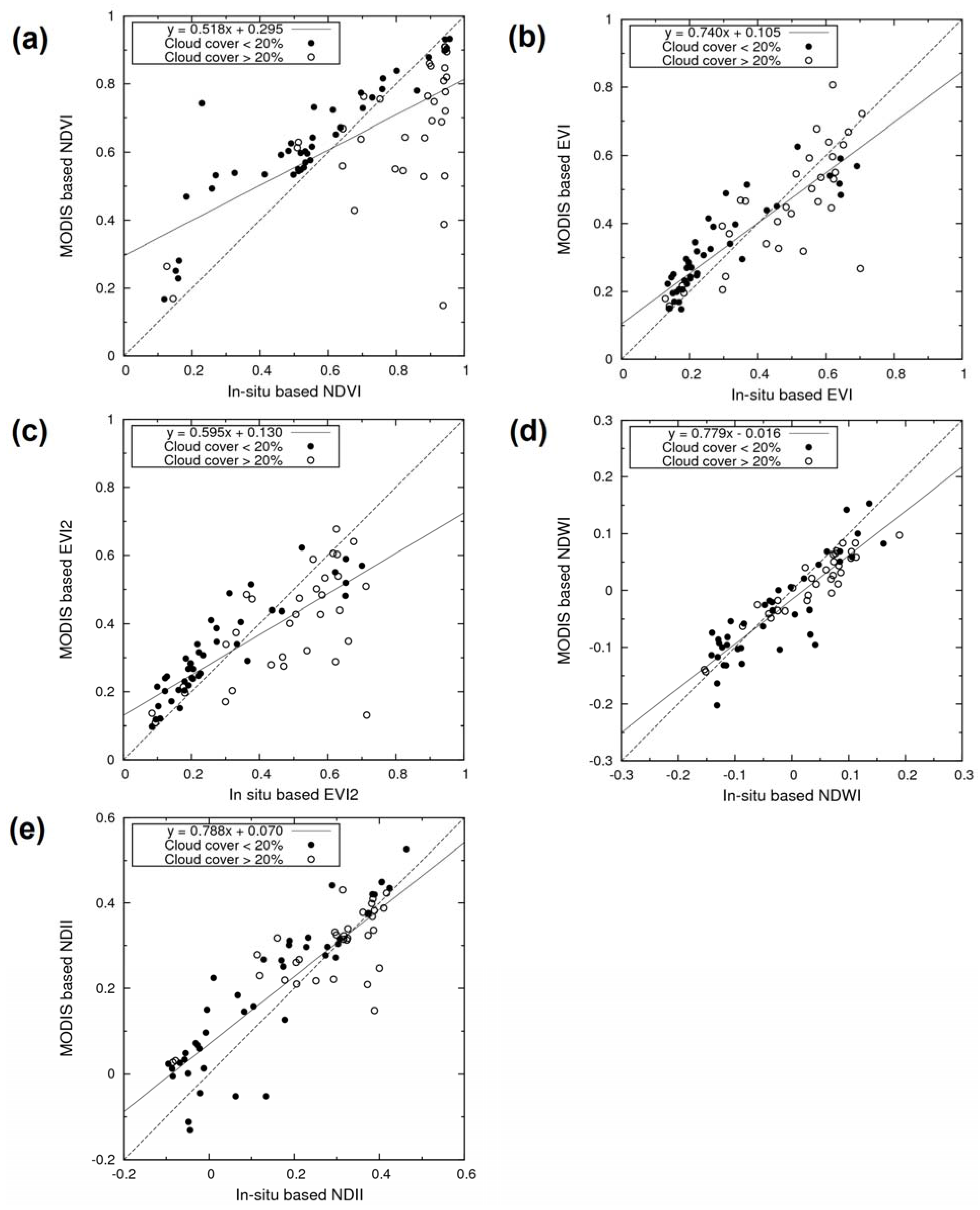 Motohka, T.; Nasahara, K.N.; Murakami, K.; Nagai, S. Evaluation of Sub-Pixel Cloud Noises on MODIS Daily Spectral Indices Based on in situ Measurements. Remote Sens. 2011, 3, 1644-1662. https://doi.org/10.3390/rs3081644