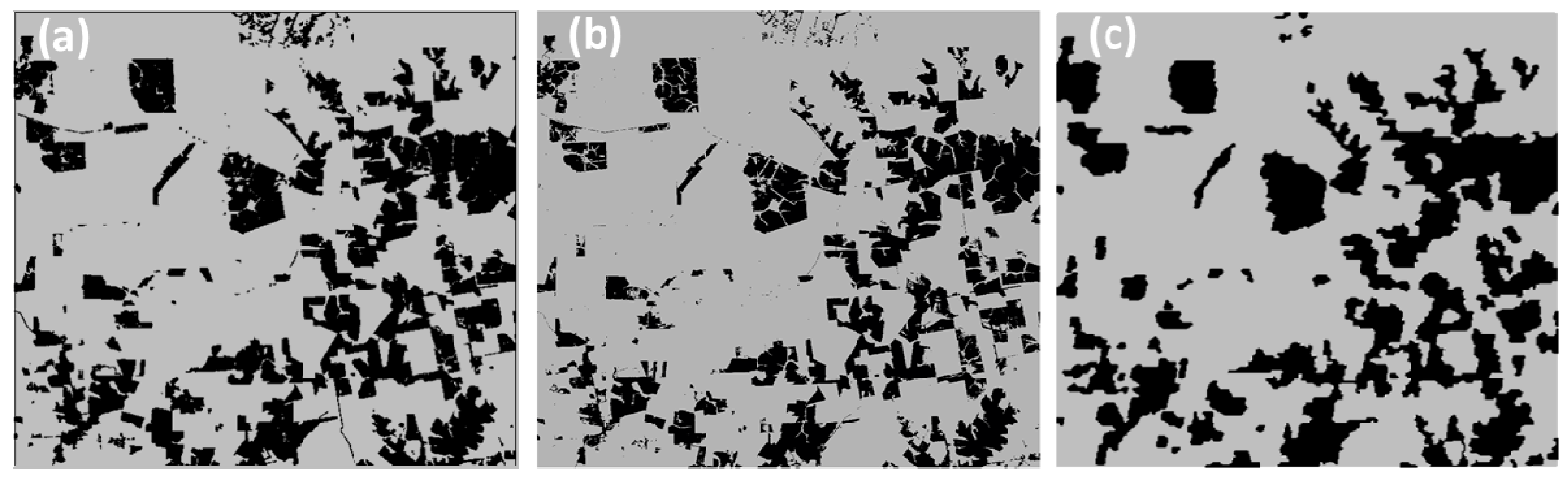 | Sensor/Classification | ETM+/L7 (km2) | MODIS/Terra (km2) | Simulated Image (km2) |