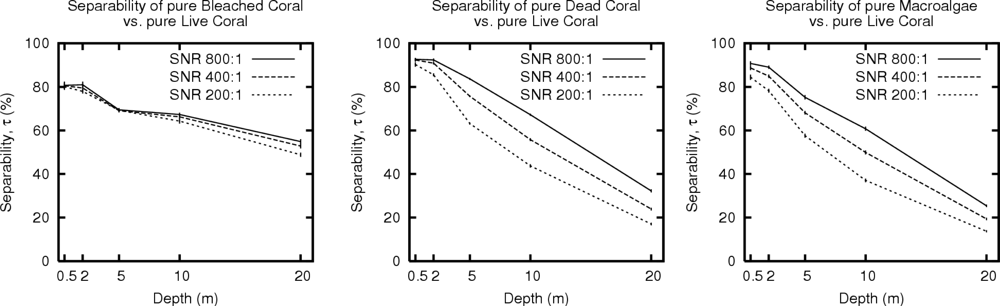 | Shallow-Deep (0.5–20m) | Shallow-Deep contains those three plus 10 m and 20 m. For example, the structure of the Shallow-Deep class implies that one of every five image pixels on the reef would be at 20 m. | |