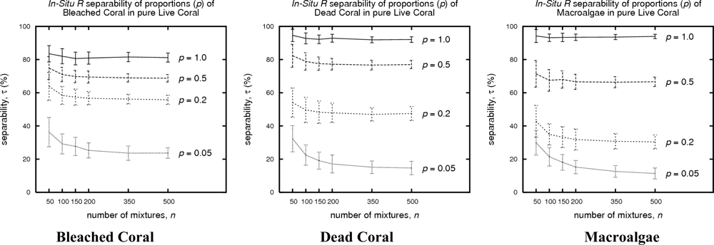| Dead Coral in Live Coral (proportion 1.0, 0.5, 0.2, 0.05) | ||