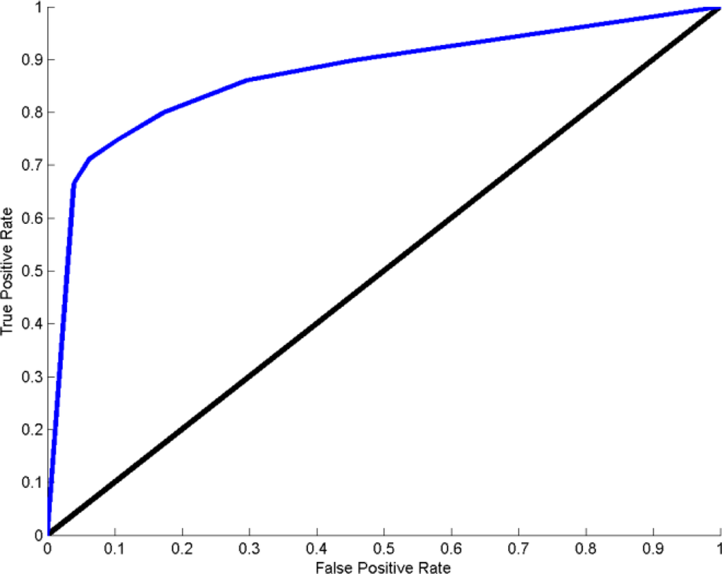 All confusion matrices resulting from this experiment (for all k’s and h’s) lead to the following receive operating characteristics (ROC) curve [26] in Figure 20. The area under the ROC curve is 0.872, which is evidence for good segment classification.