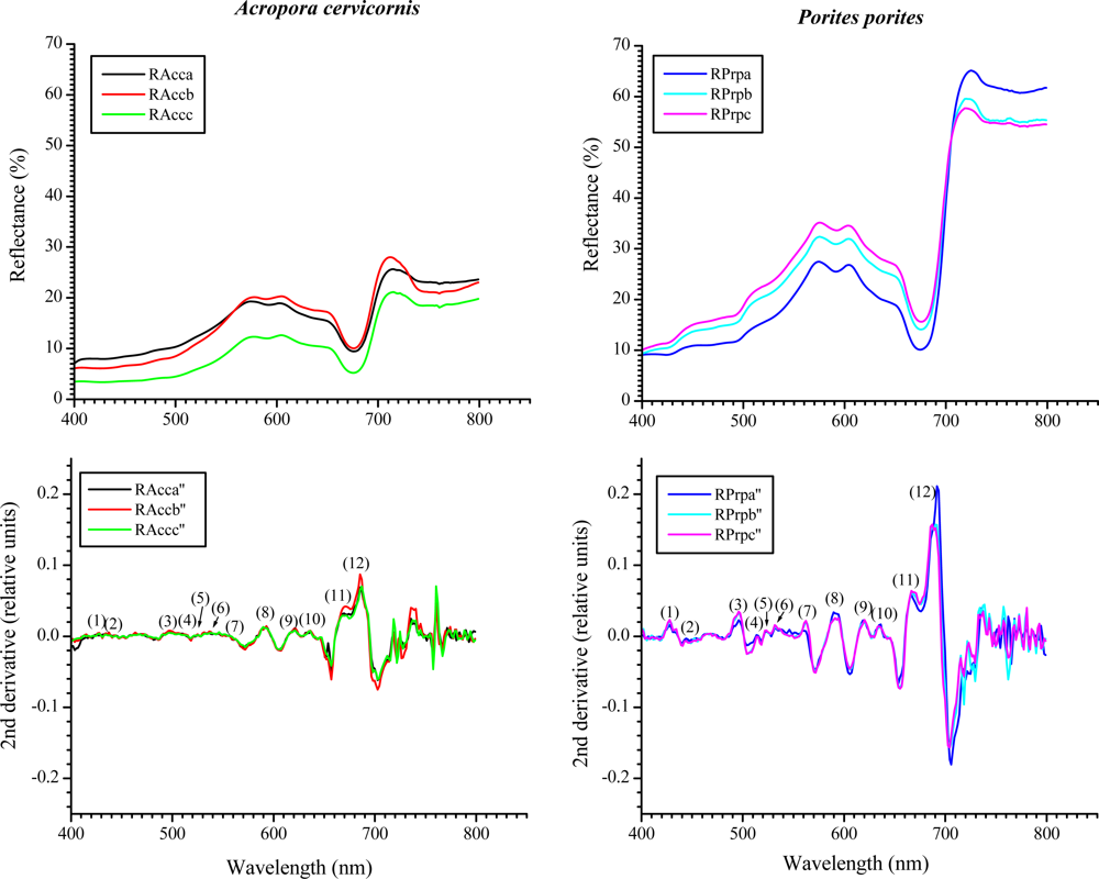 Hyperspectral Distinction of Two Caribbean Shallow-Water Corals Based on Their Pigments and Corresponding Reflectance