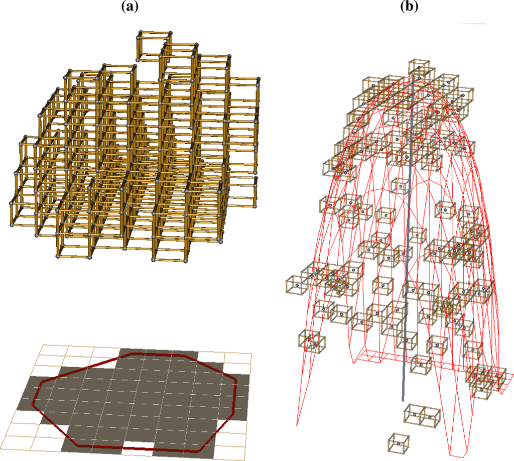 In order to obtain three-dimensional crown information about each tree crown, we created a voxel-based segmentation algorithm. Under this three-dimensional region growing algorithm, individual layers of the voxel array are read one at a time starting with the topmost layer. Individual voxels from each layer are added to new or existing voxel-clusters depending on their distance from these existing clusters. The ability of a cluster to incorporate a new voxel depends on current number of member voxels, vertical center of mass of these member voxels, as well as distance from the new voxel. Table 1 lists the default values for parameters that control search window size, cluster competition for new voxels, and cluster size limits. The algorithm, and the meaning of these parameters are given below.